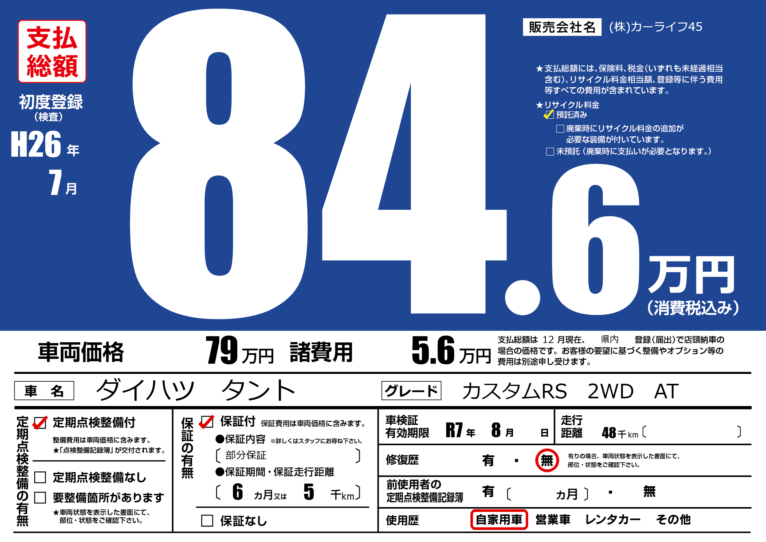 初年度登録 H26年7月
