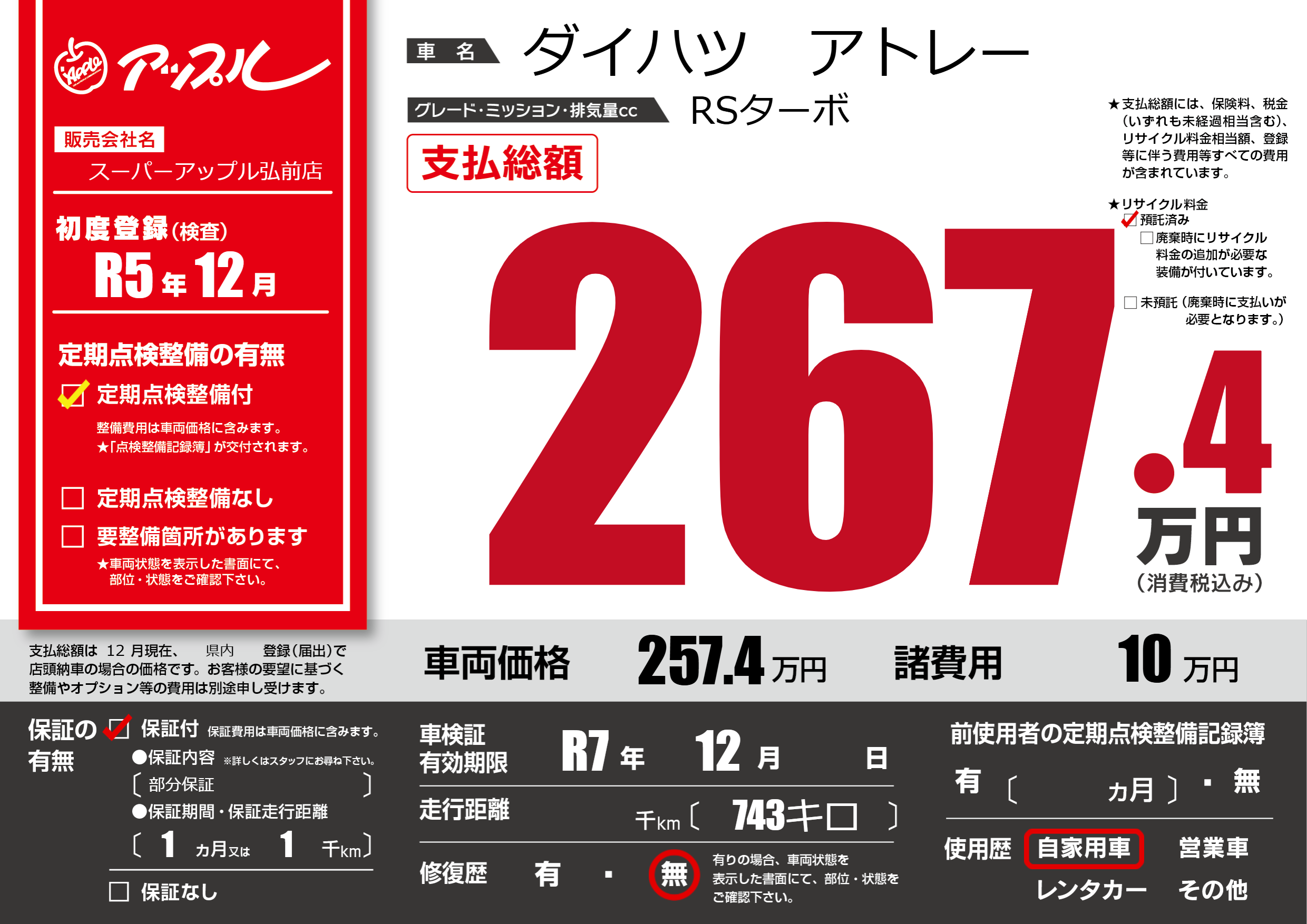 なし | 車検制限 | R7年12月---月 |