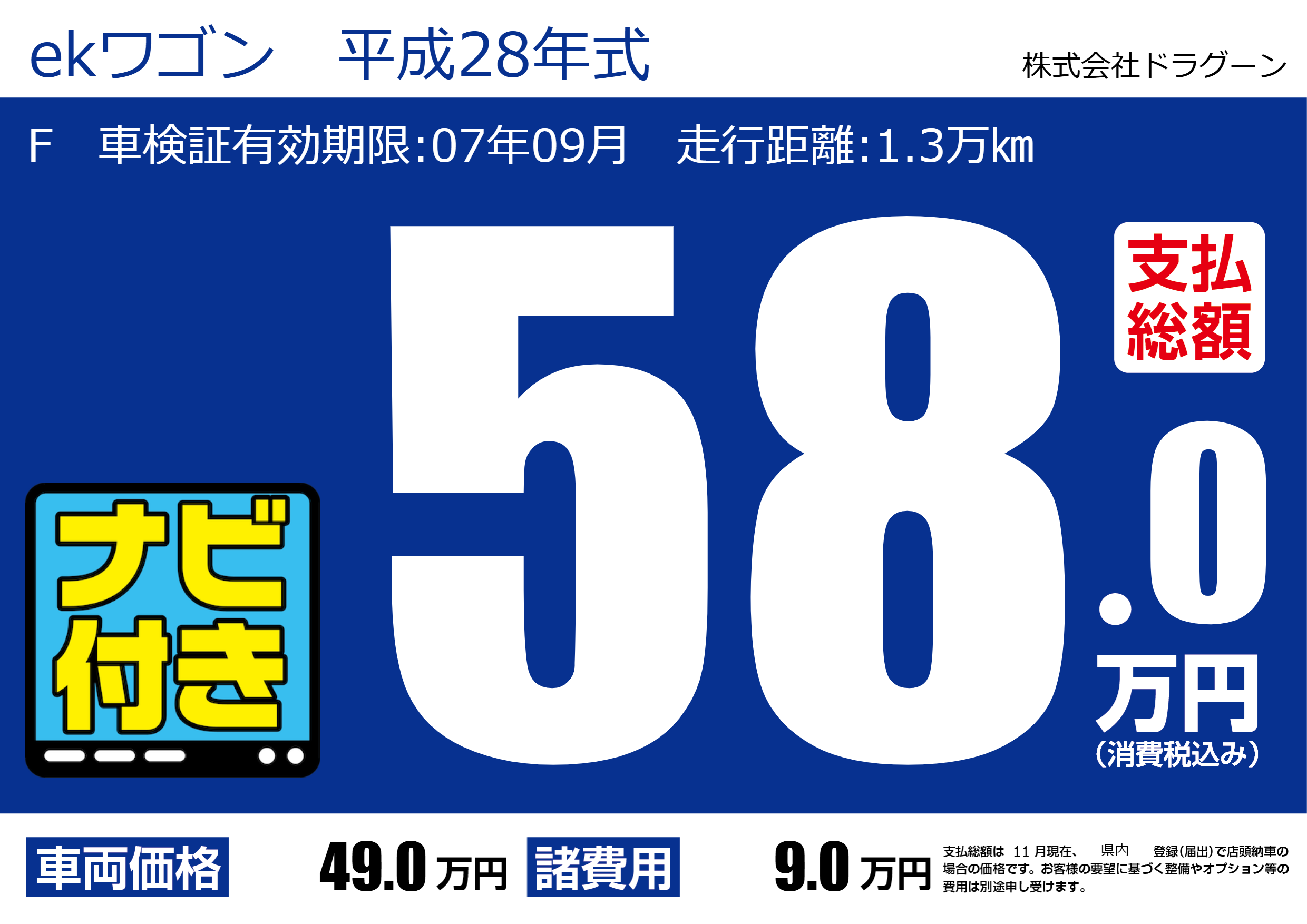 | 車名 | ekワゴン 平成28年式 | グレード ミッション 排気量 |