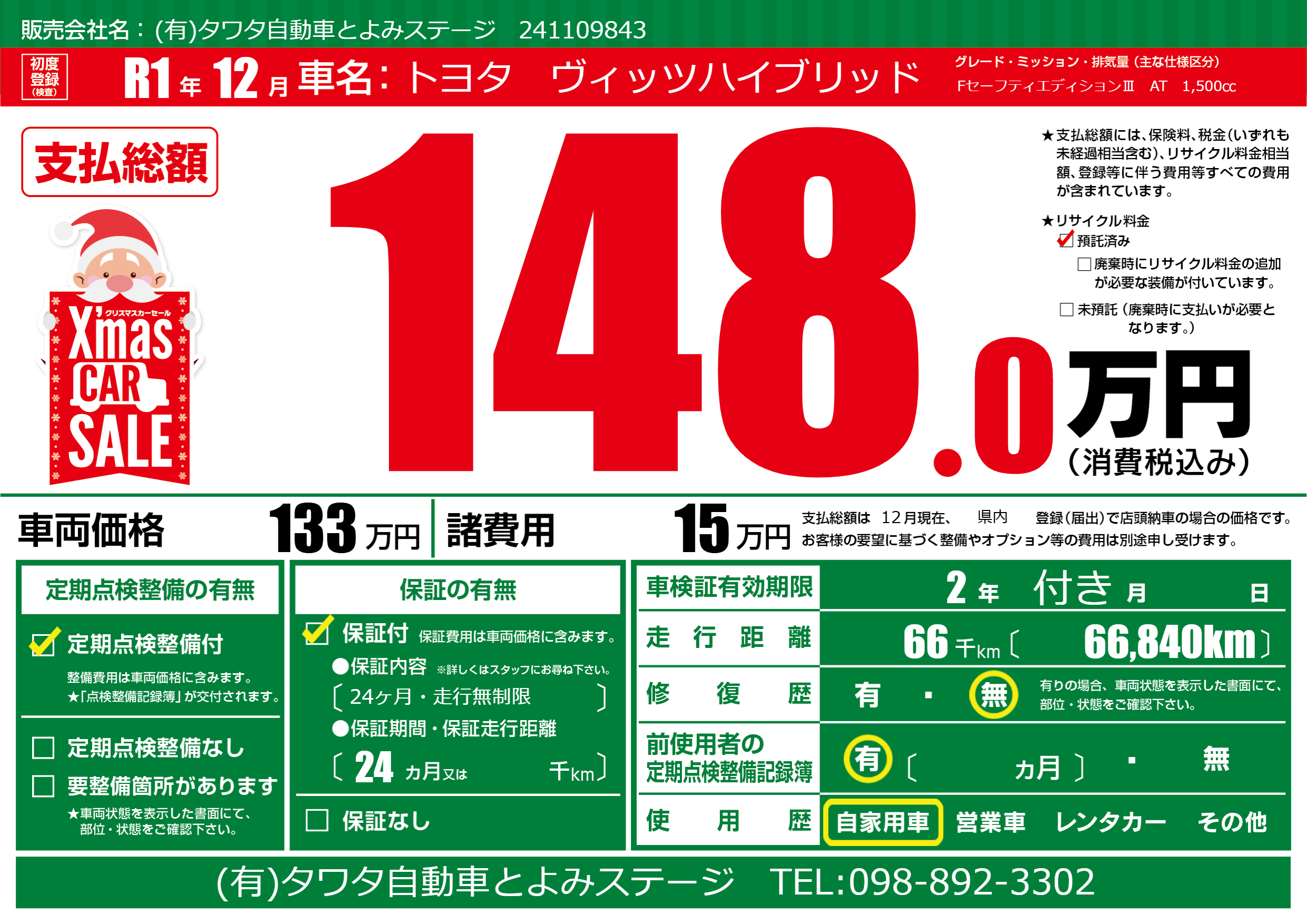 | 走行キロ | 6.6万km | 初年度登録 | R1年12月 |