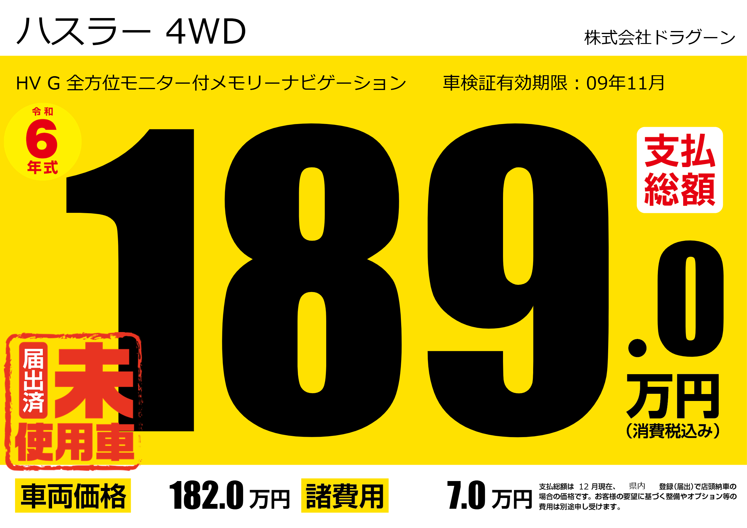 | 車名 | ハスラー 4WD | グレード ミッション 排気量 |