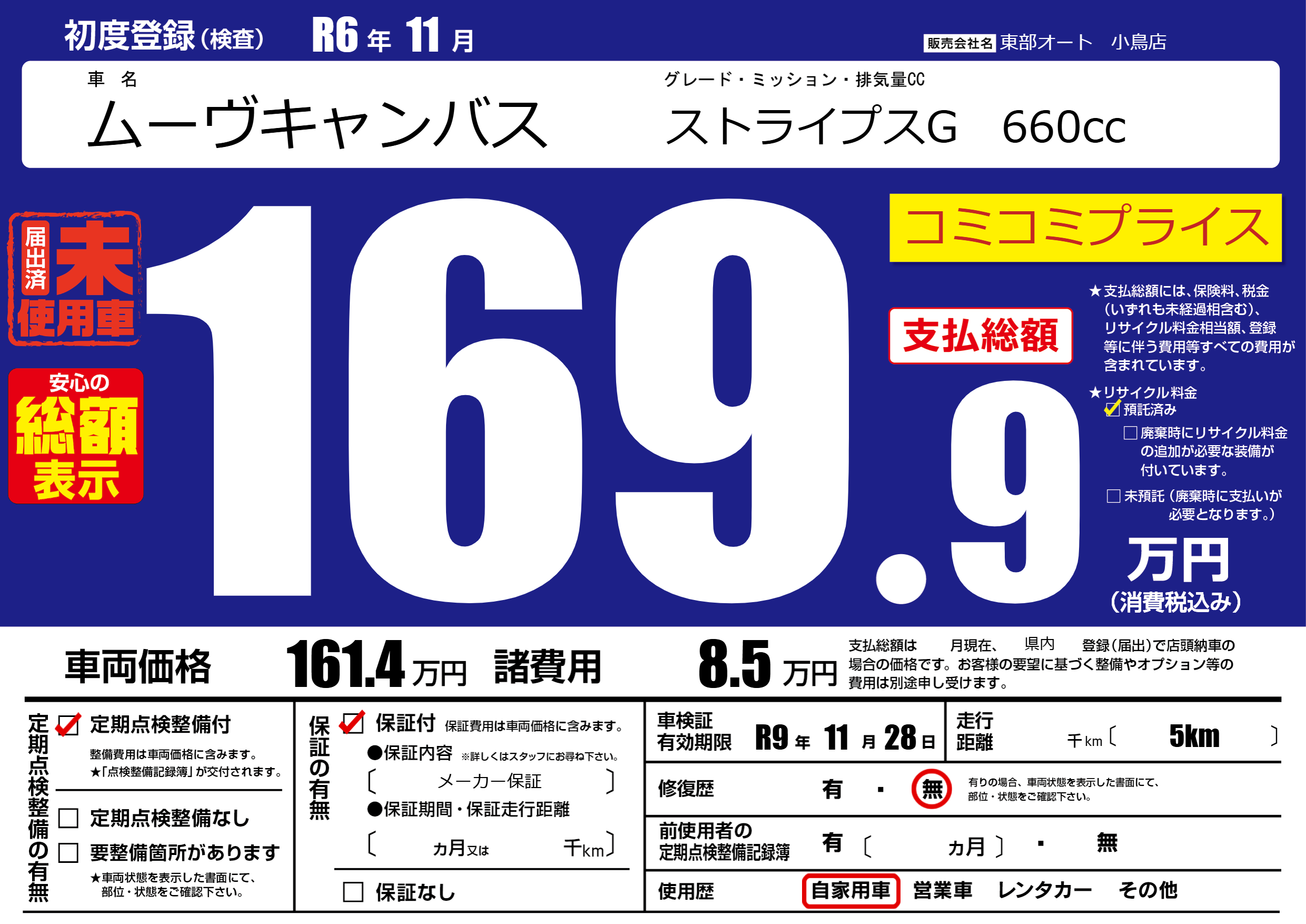 保証付き 保証内容( メーカー保証) ---ヶ月または()千kmまで |