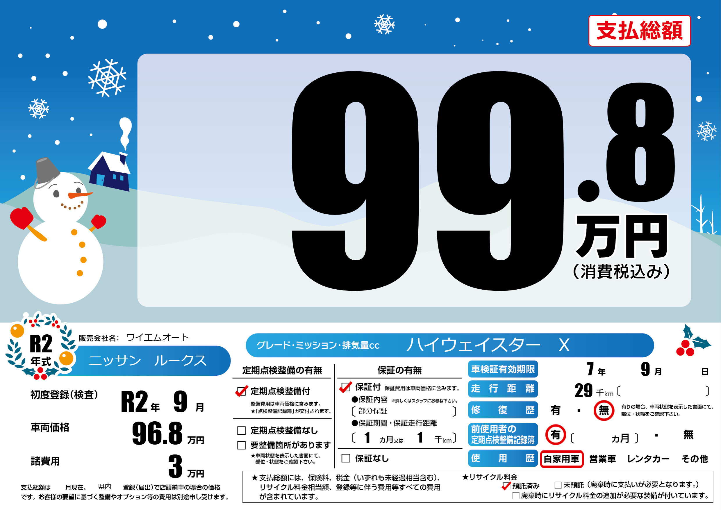 | 走行キロ | 2.9万km | 初年度登録 | R2年9月 |