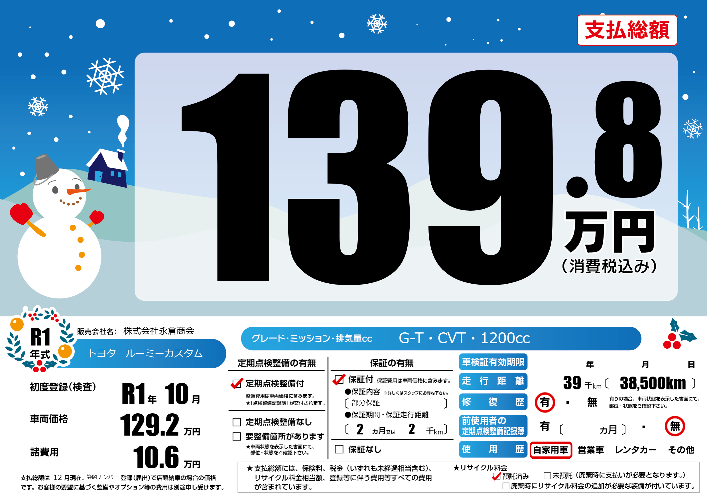 | 定期点検整備 | 定期点検整備あり | ||