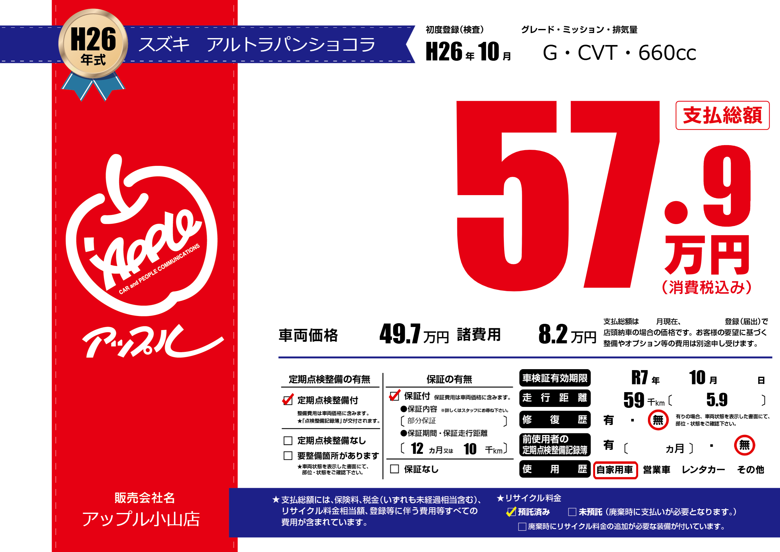 | 車名 | スズキ アルトラパンショコラ | グレード ミッション 排気量 |