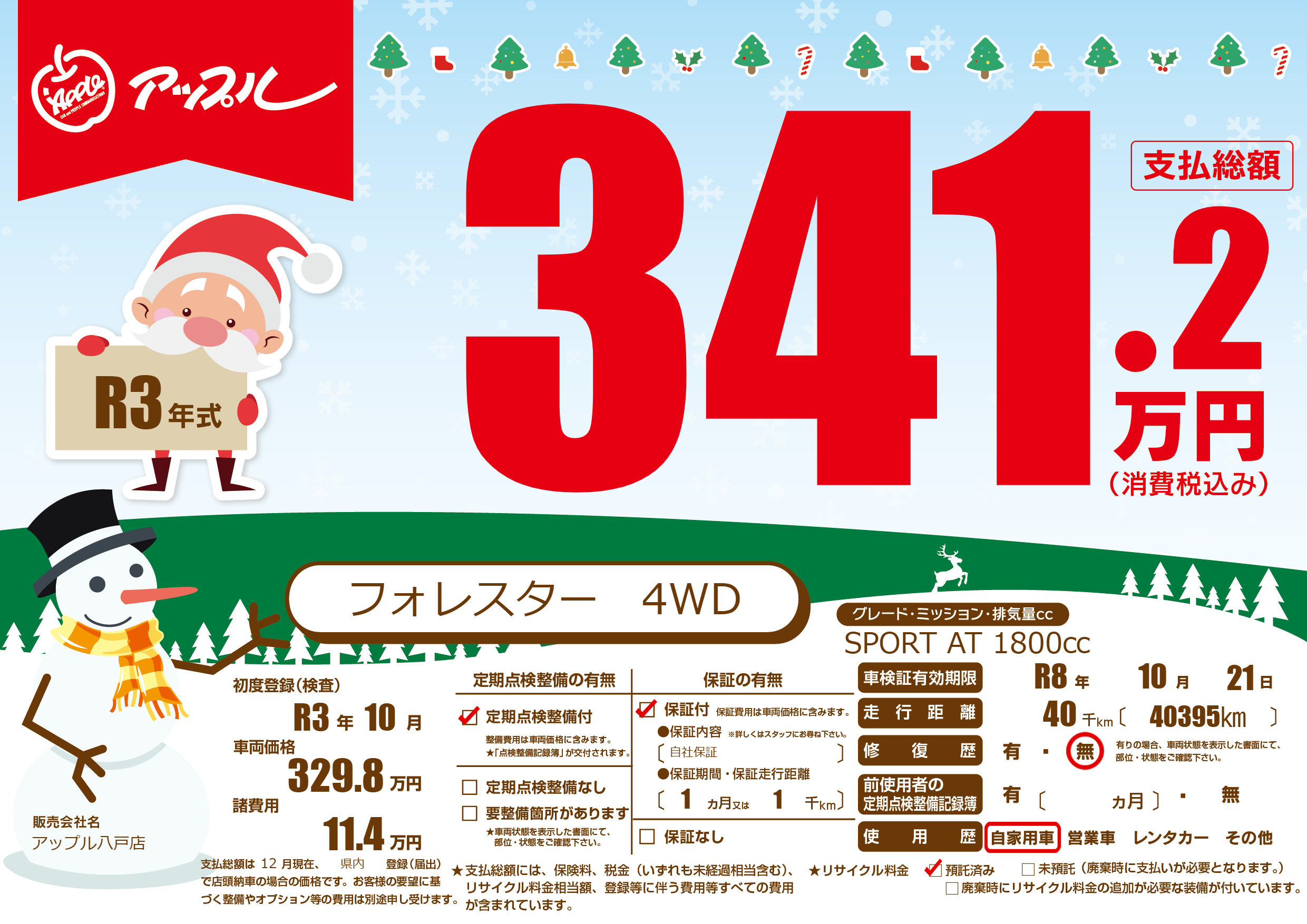 | 走行キロ | 4万km | 初年度登録 | R3年10月 |