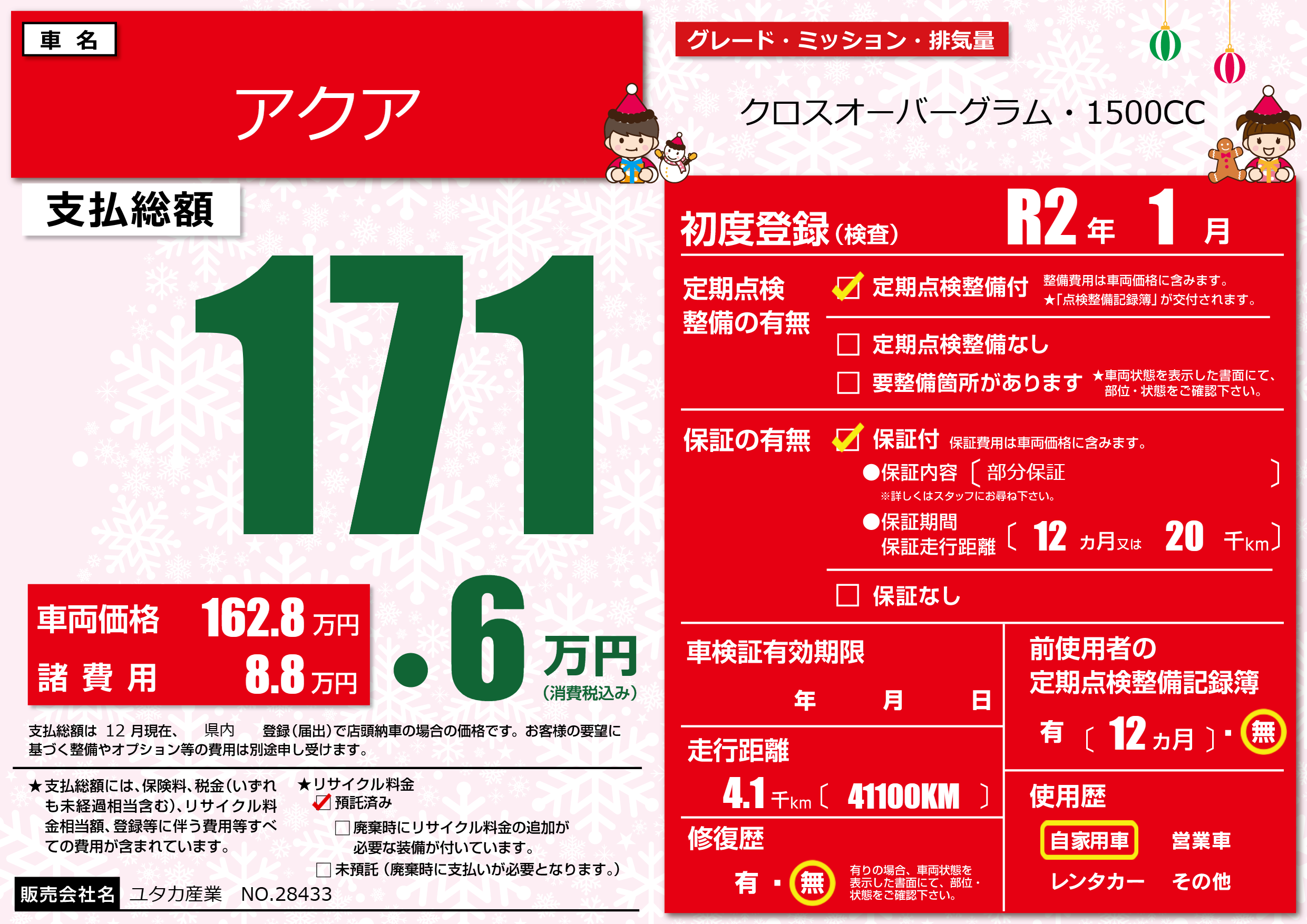 | 走行キロ | 0.4万km | 初年度登録 | R2年1月 |