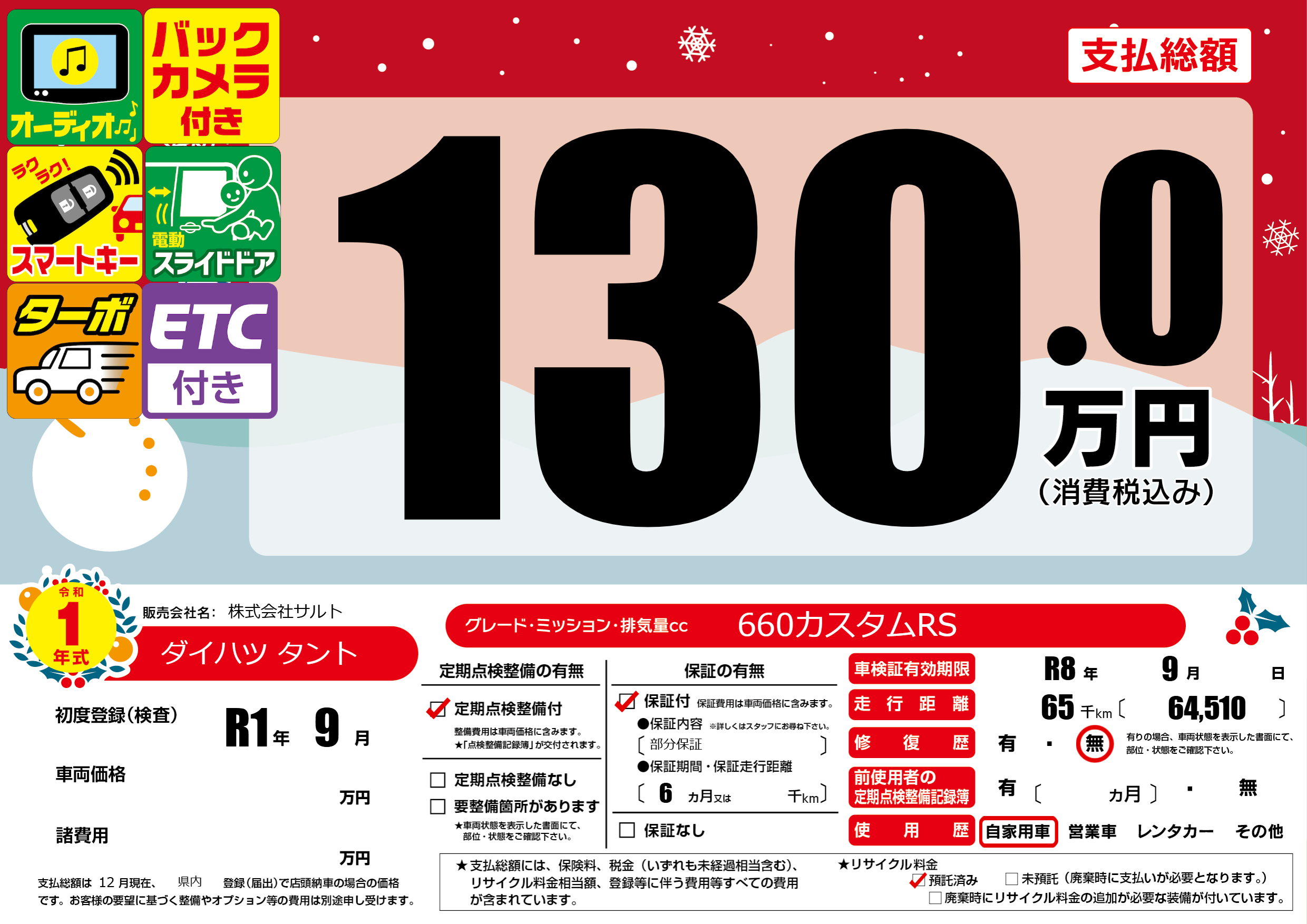 | 車検制限 | R8年 9月 - 日 | ||