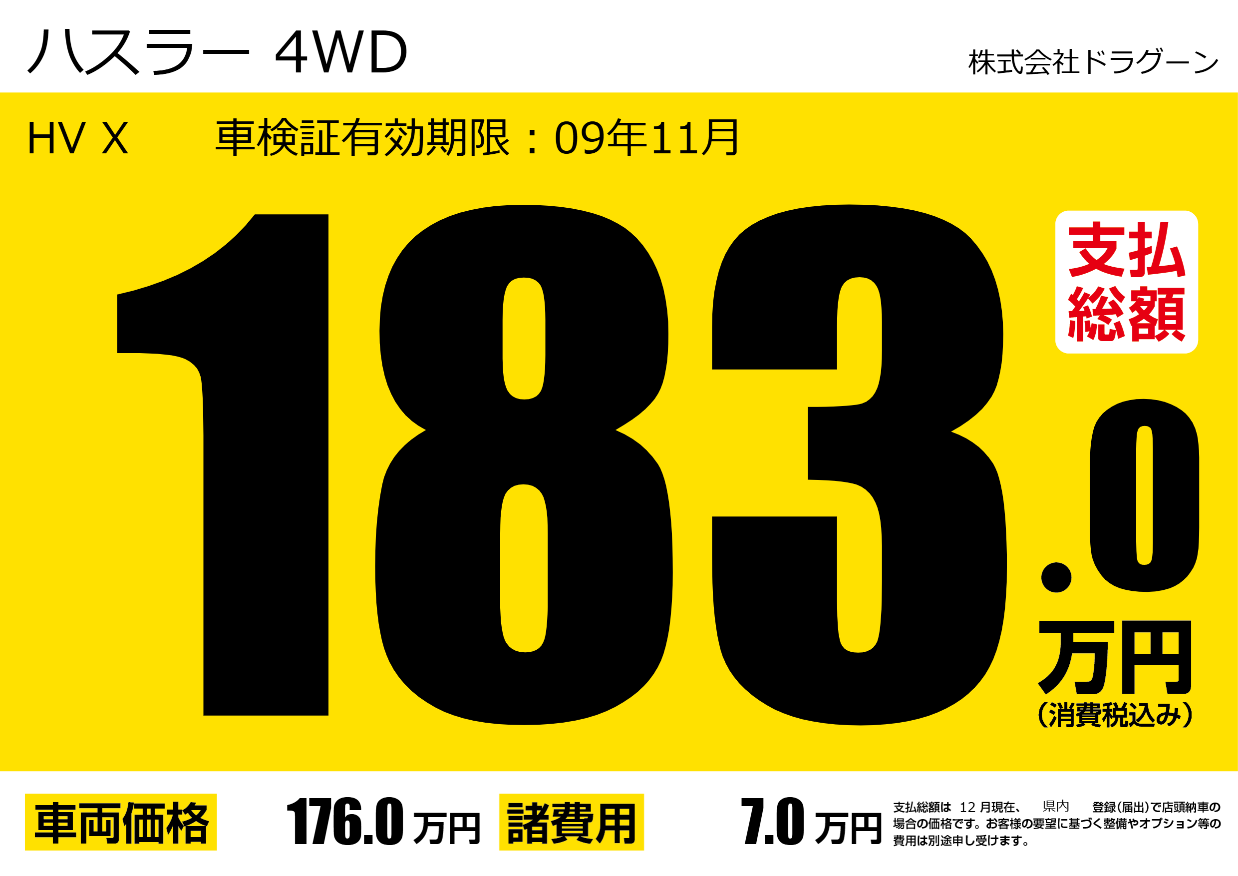| 車名 | ハスラー 4WD | グレード ミッション 排気量 |