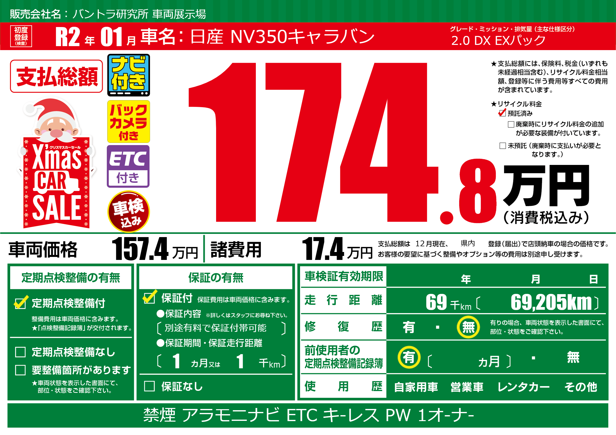 | 車名 | 日産 NV350キャラバン | グレード ミッション 排気量 |