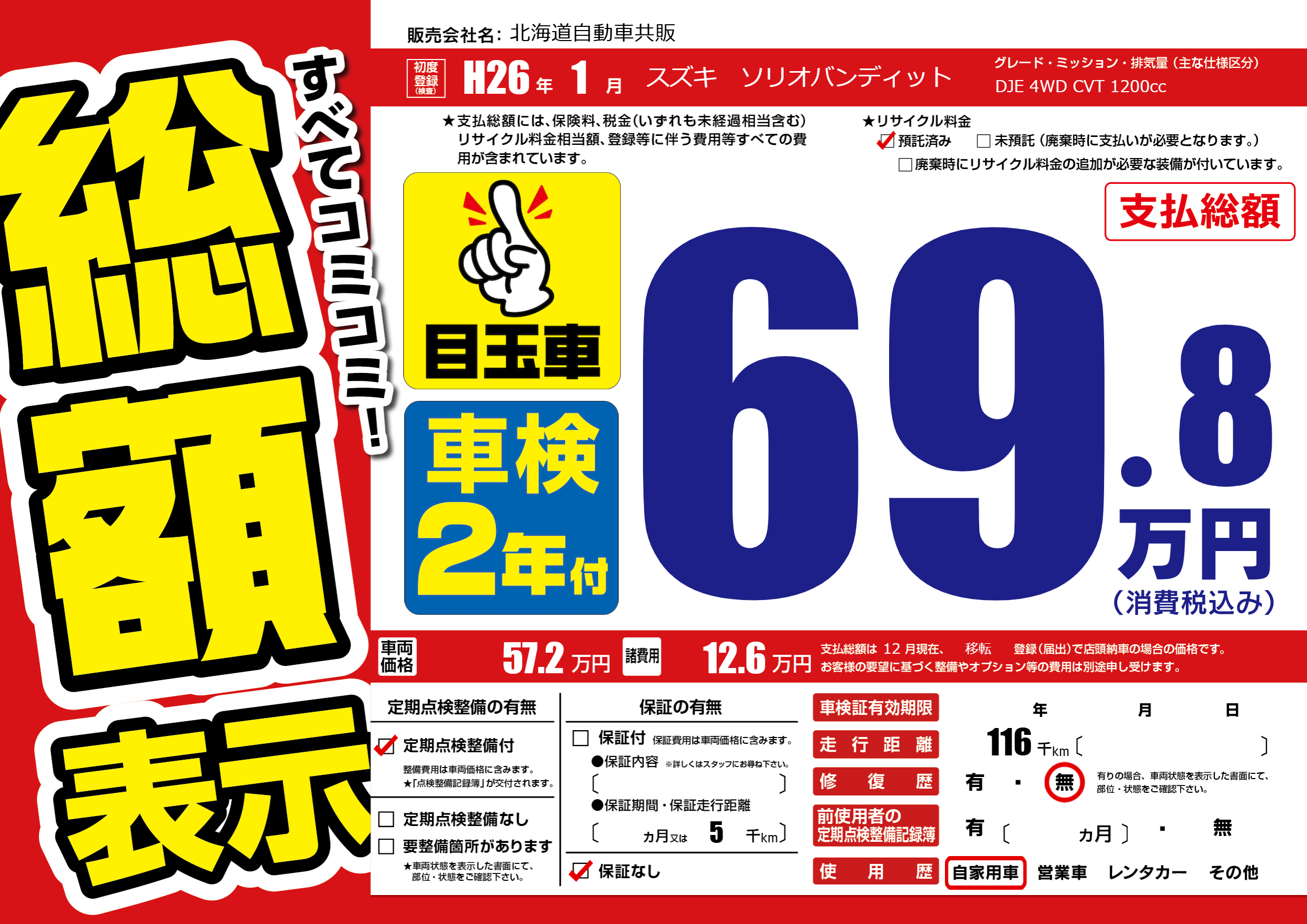 | 走行キロ | 11.6万km | 初年度登録 | H26年1月 |