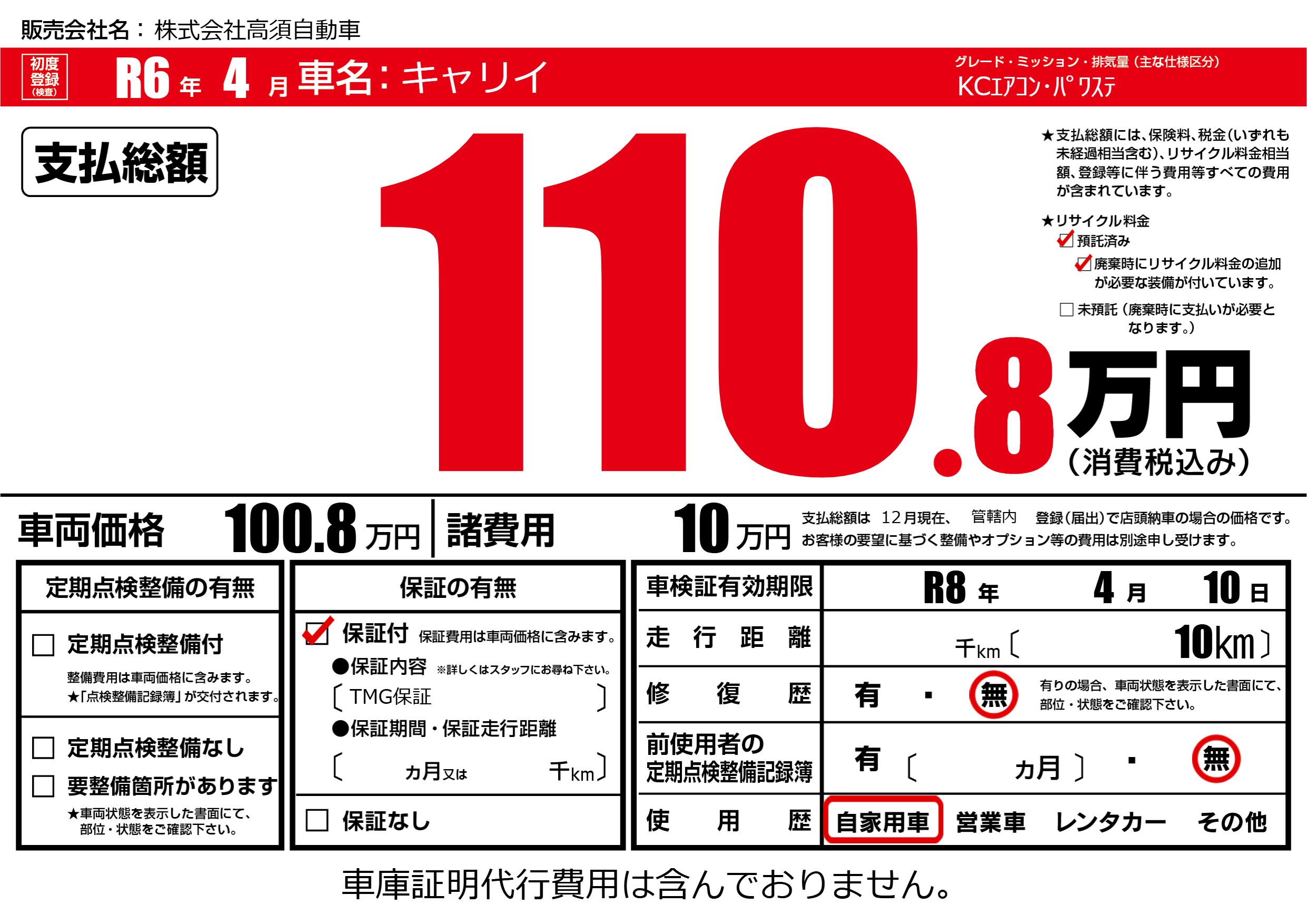保証付き 保証内容(TMG保証) ---ヶ月または()千kmまで |