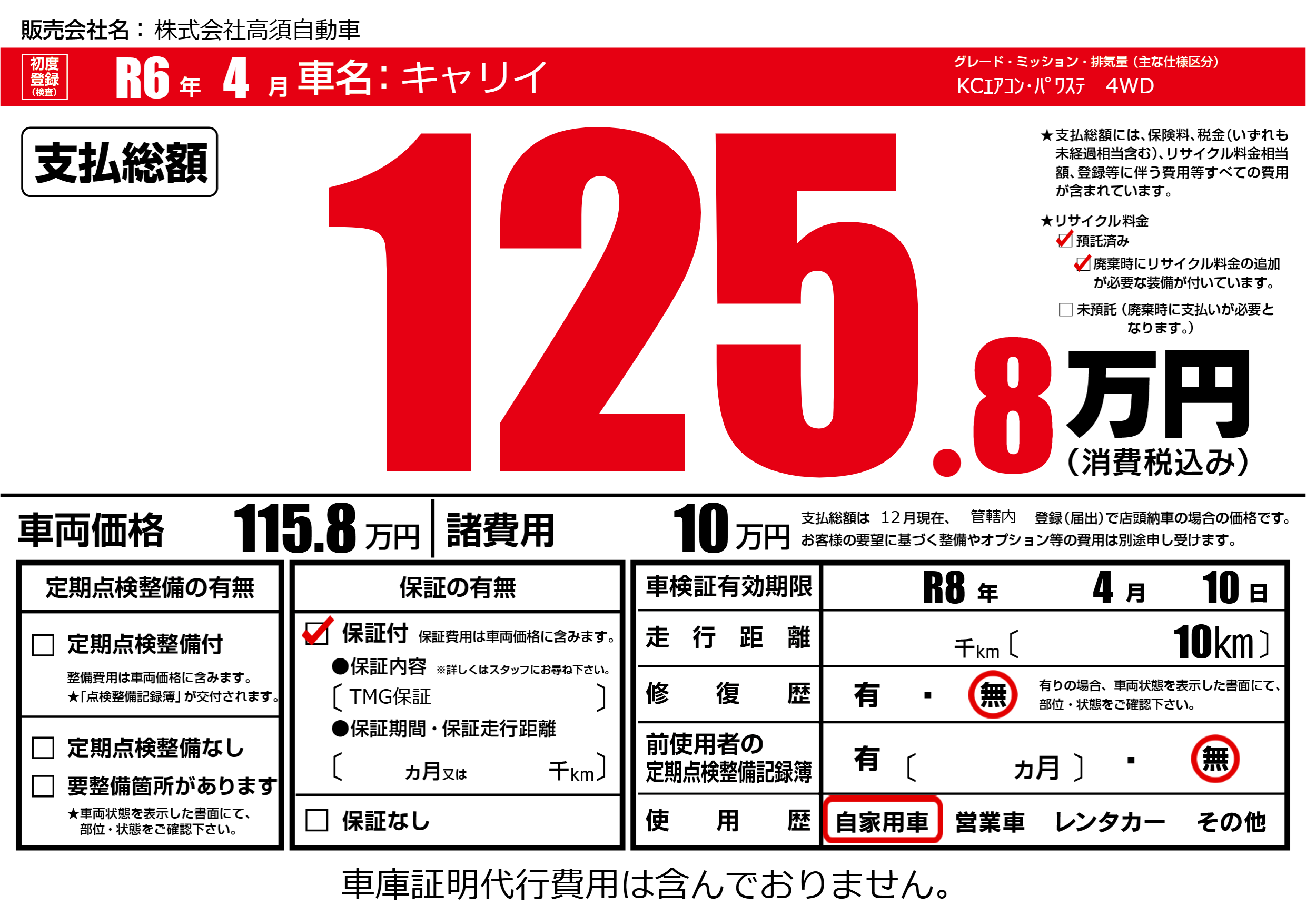 保証付き 保証内容(TMG保証) ---ヶ月または()千kmまで |