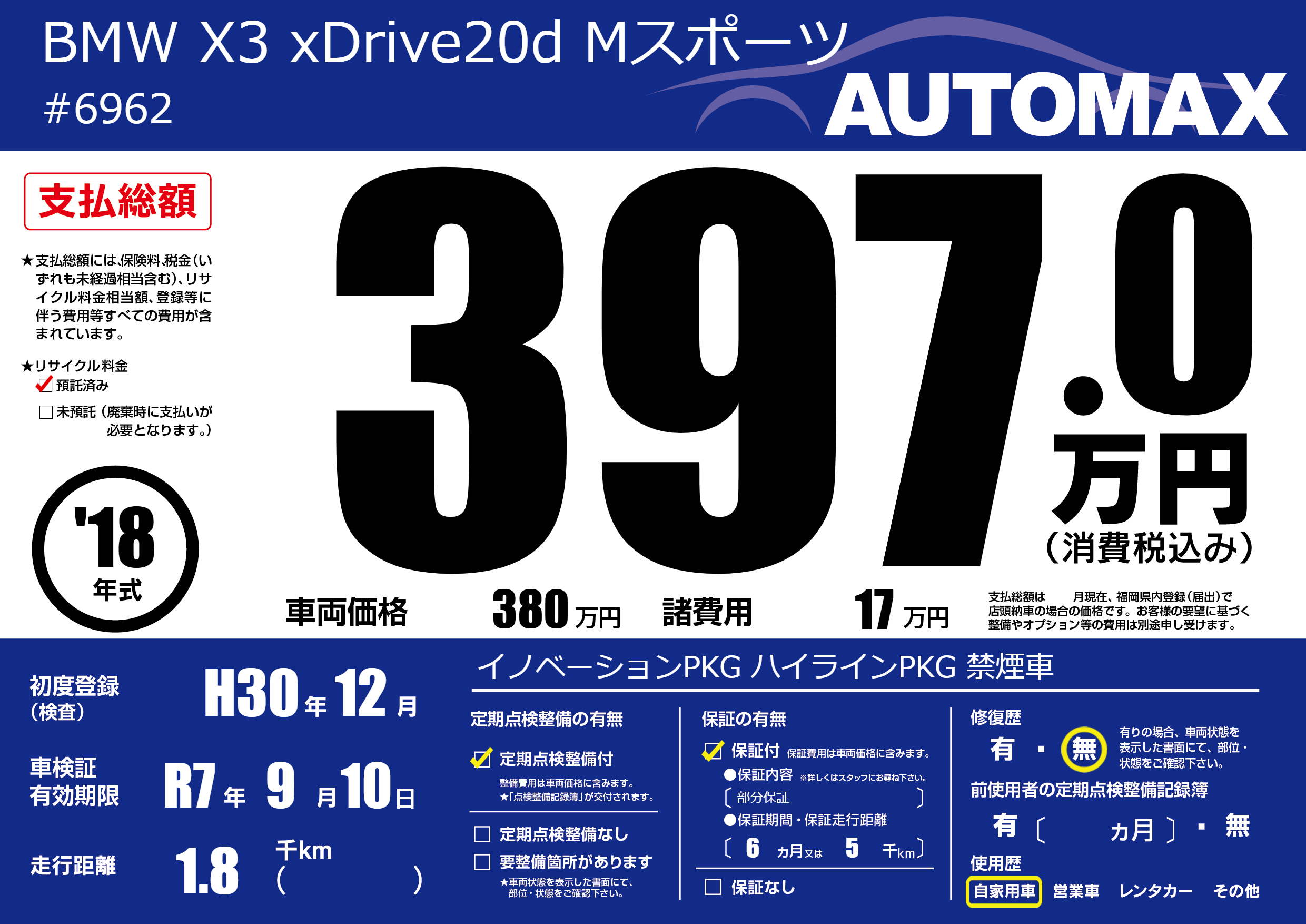 | 車検制限 | R7年 9月 10日 | ||