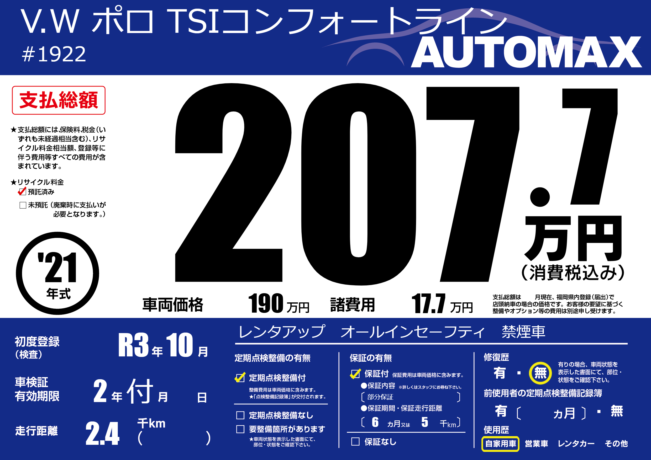なし | 車検制限 | 2年付月---月 |