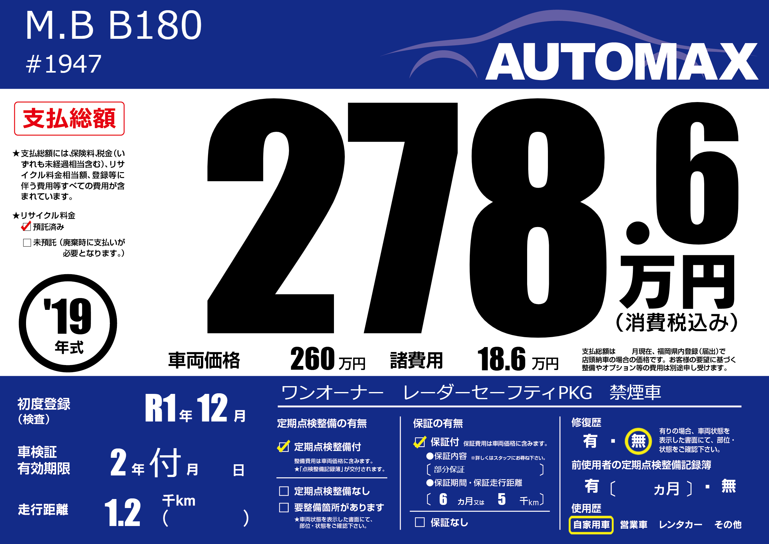 | 定期点検整備 | 定期点検整備あり | ||