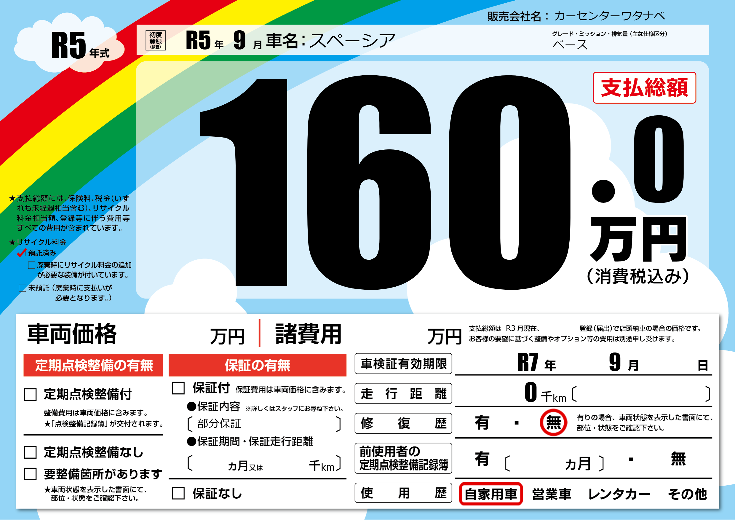 なし | 車検制限 | R7年9月---月 |