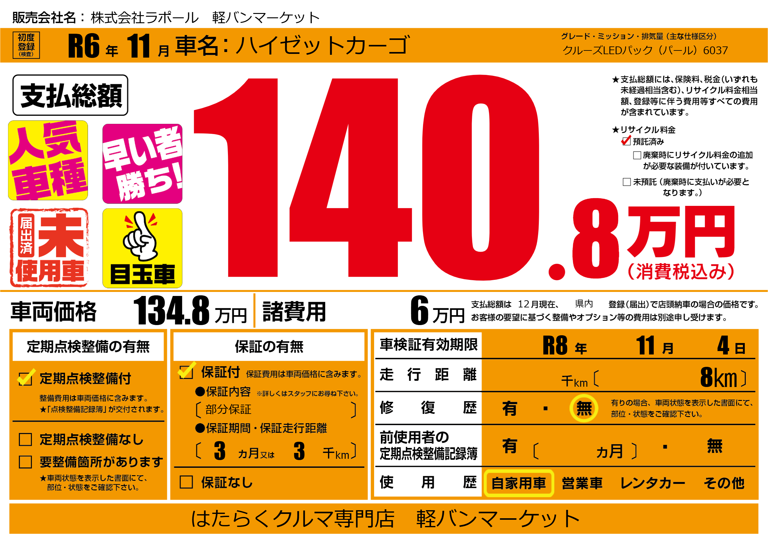 なし | 車検制限 | R8年11月4月 |