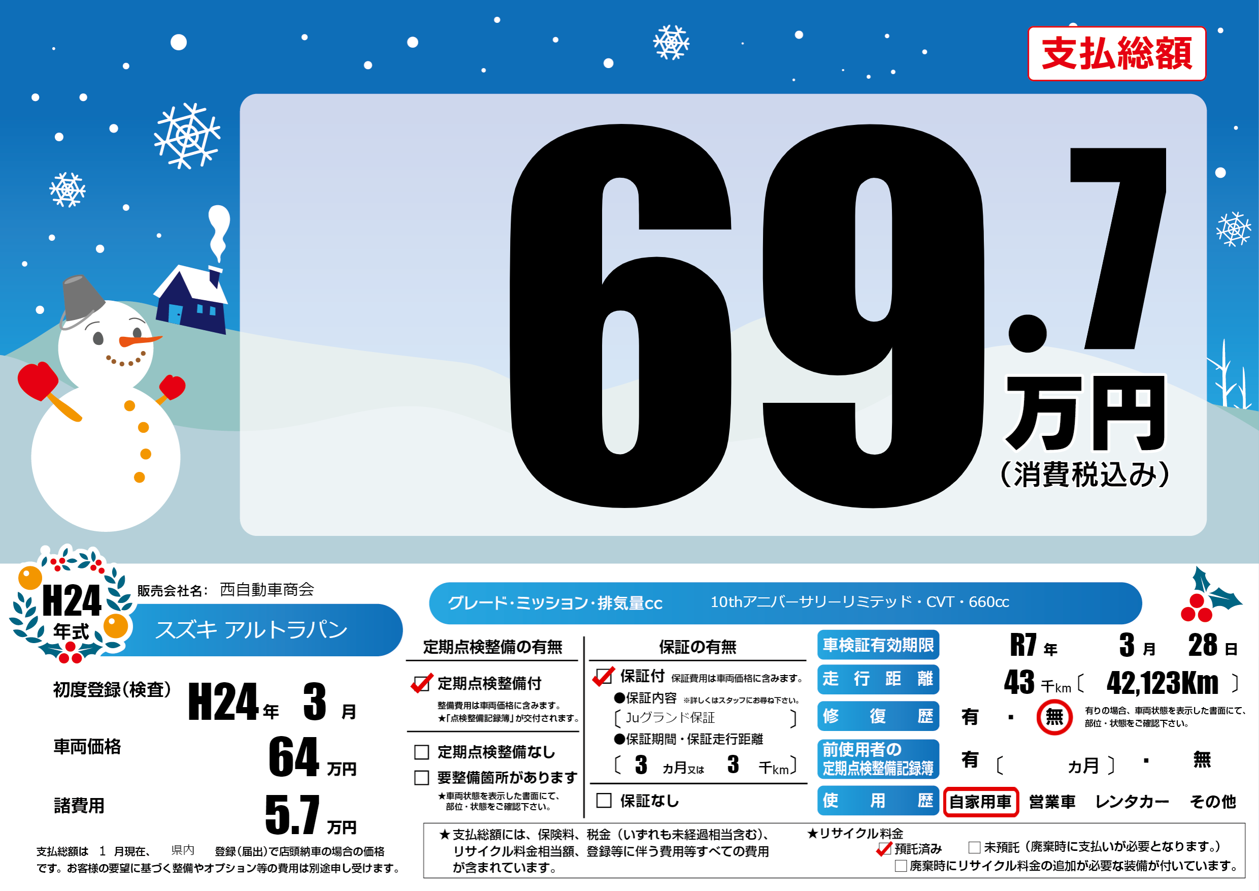 | 走行キロ | 4.3万km | 初年度登録 | H24年3月 |