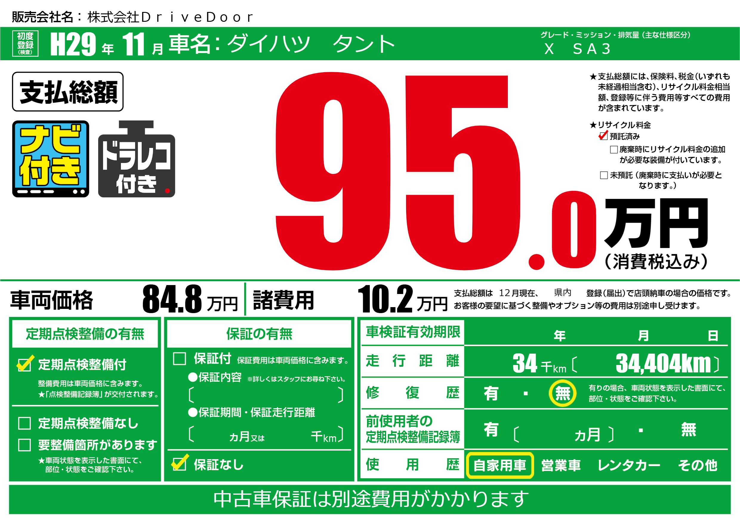 | 走行キロ | 3.4万km | 初年度登録 | H29年11月 |