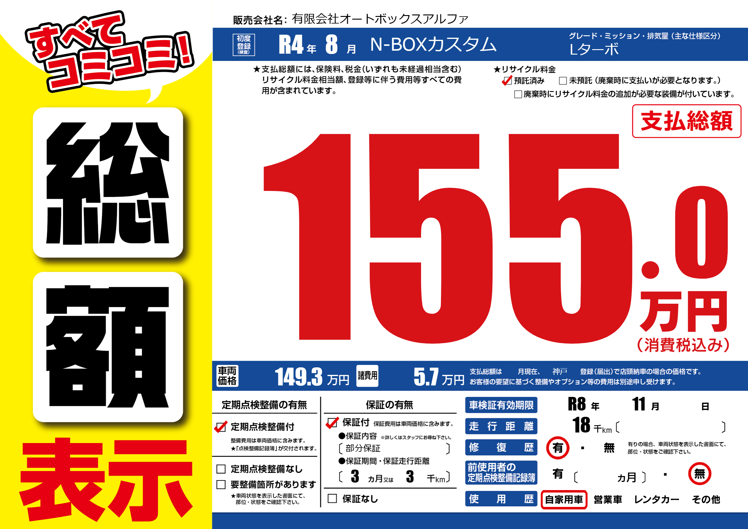 | 車名 | N-BOXカスタム | グレード ミッション 排気量 |