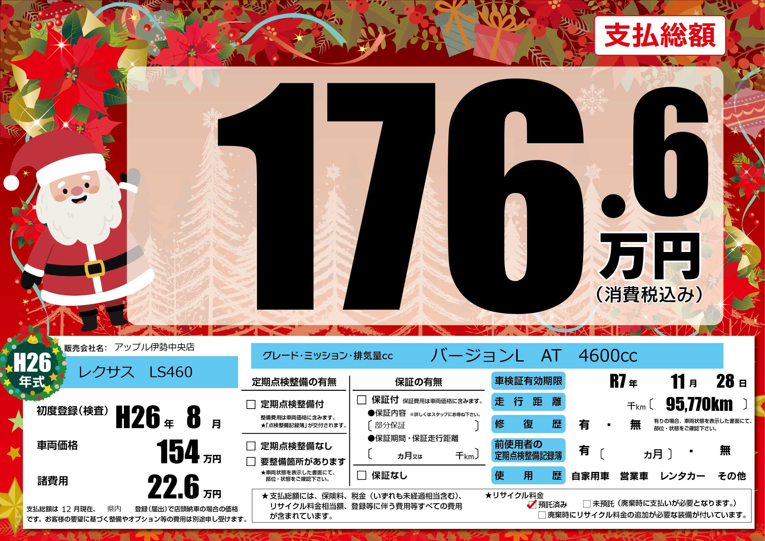 | 車名 | レクサス LS460 | グレード ミッション 排気量 |