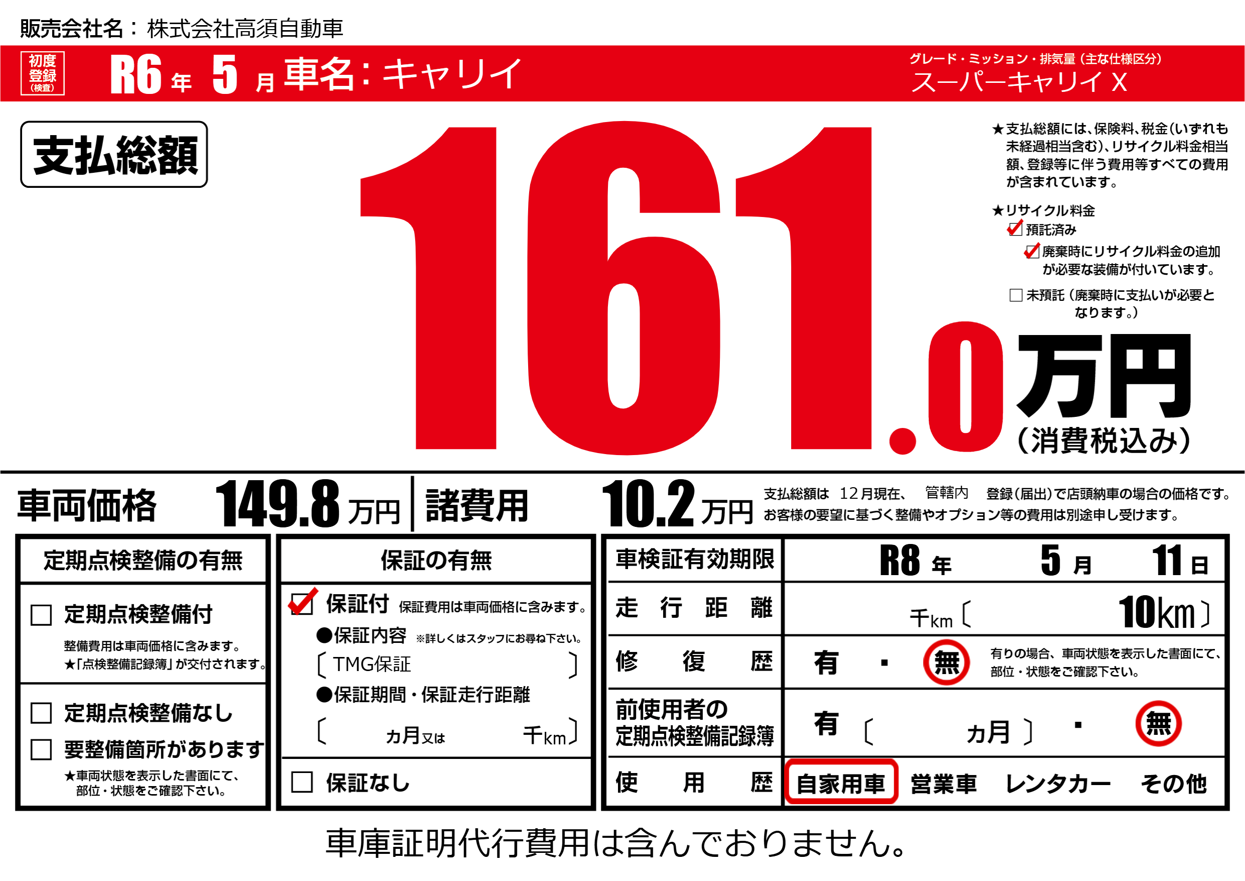 保証付き 保証内容(TMG保証) ---ヶ月または()千kmまで |
