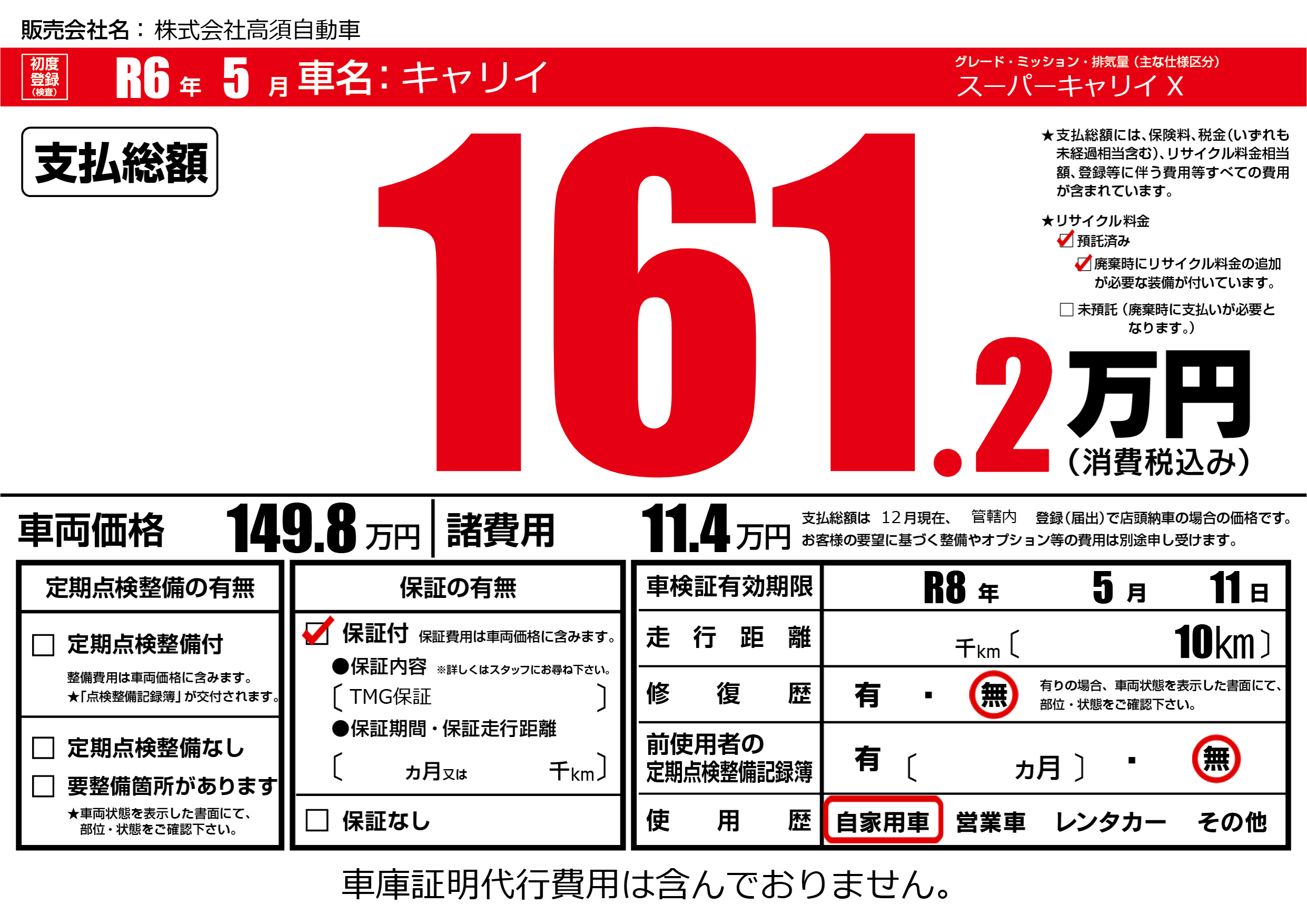 保証付き 保証内容(TMG保証) ---ヶ月または()千kmまで |