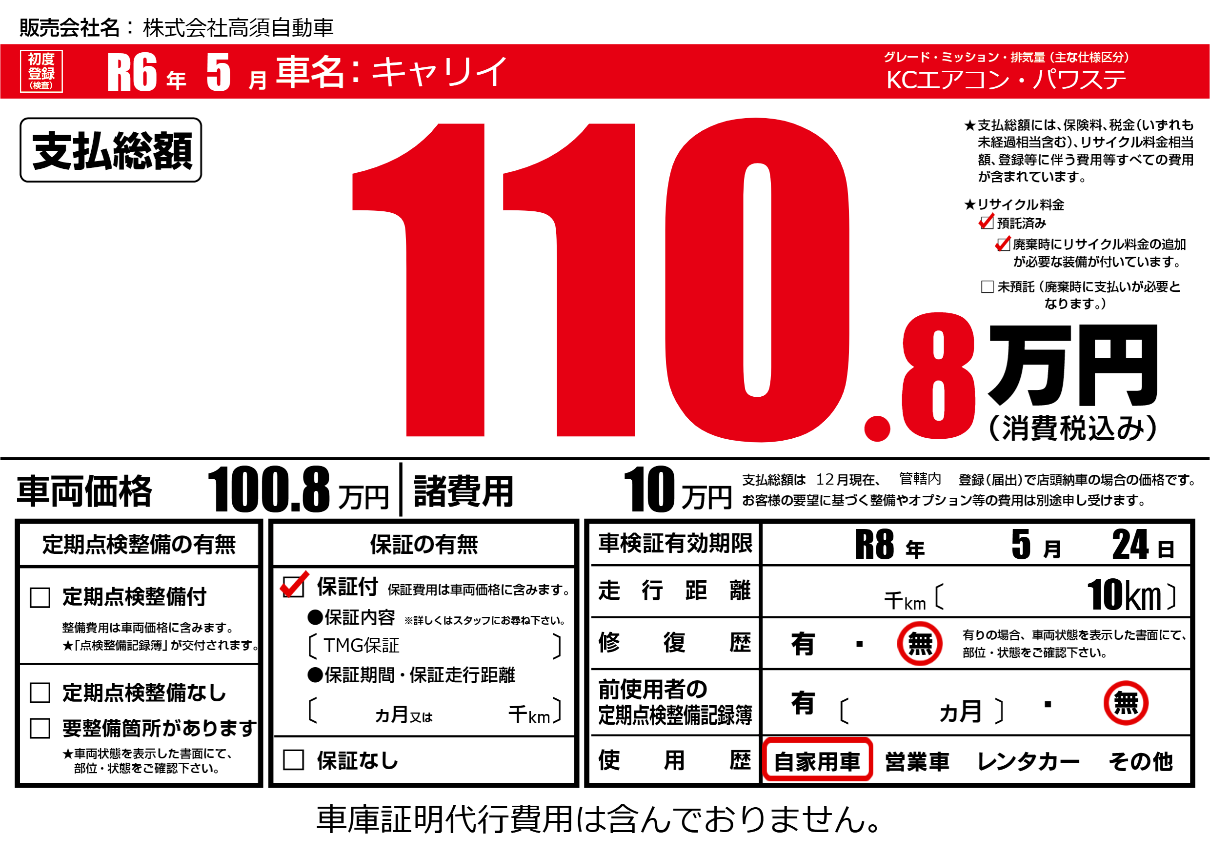 なし | 車検制限 | R8年5月24月 |