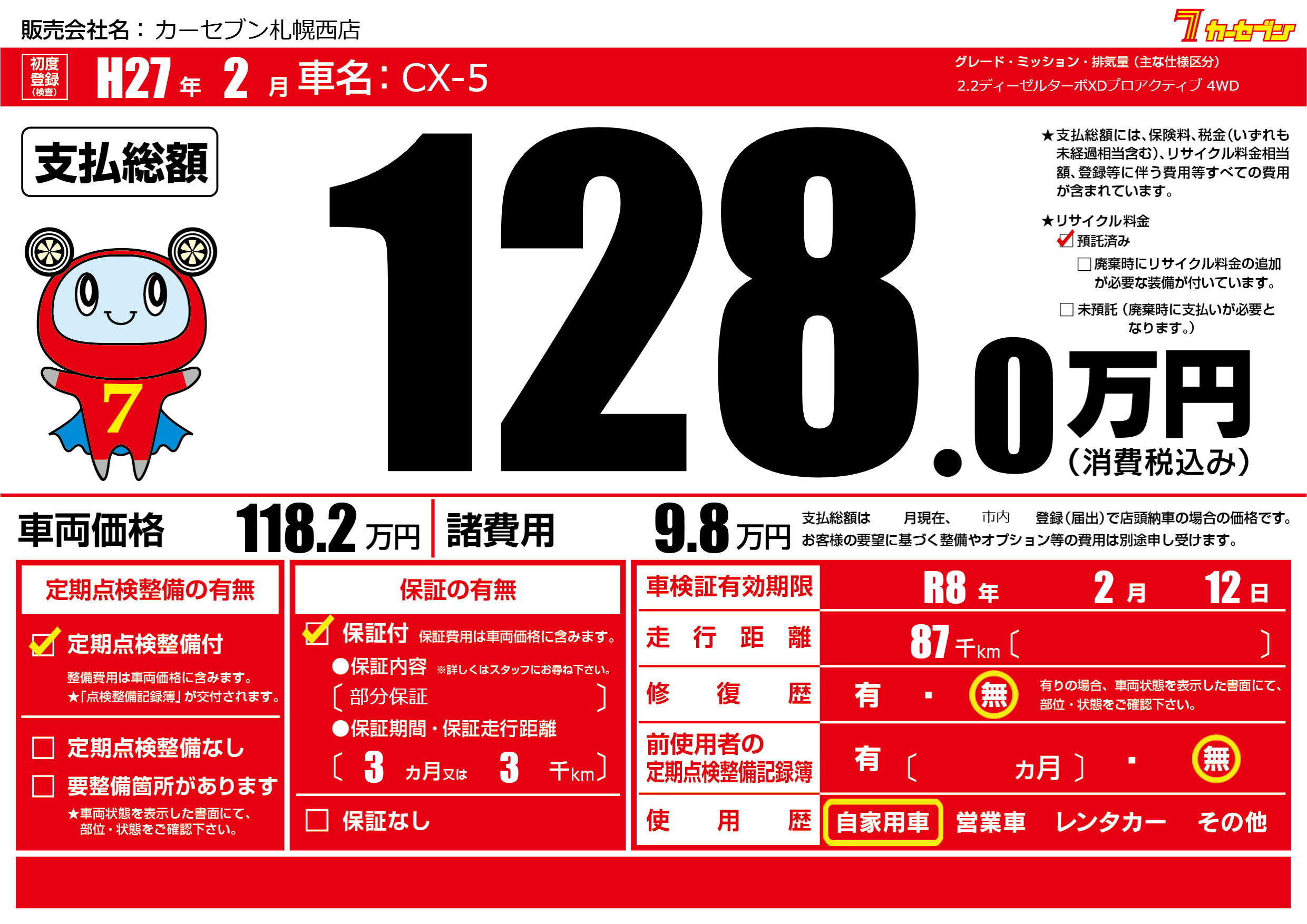 | 車名 | CX-5 | グレード ミッション 排気量 |