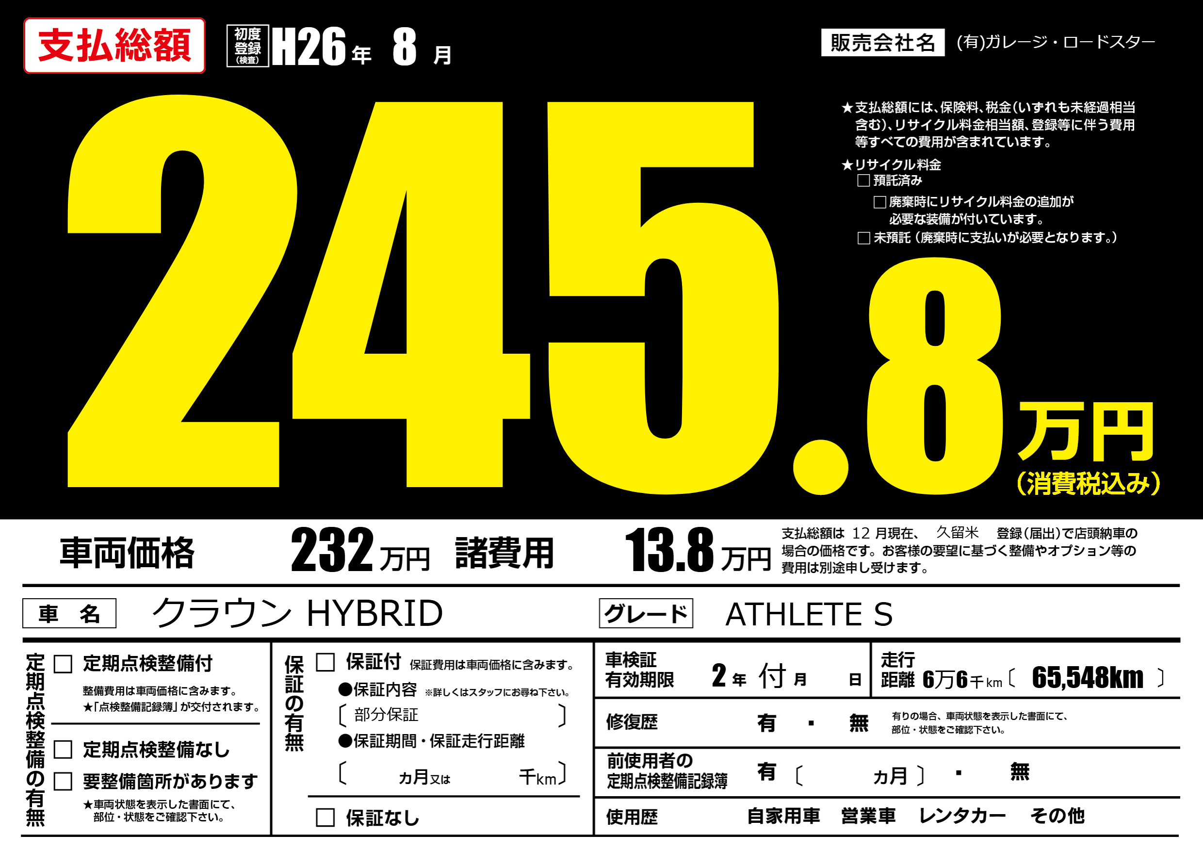 | 車名 | クラウン HYBRID | グレード ミッション 排気量 |