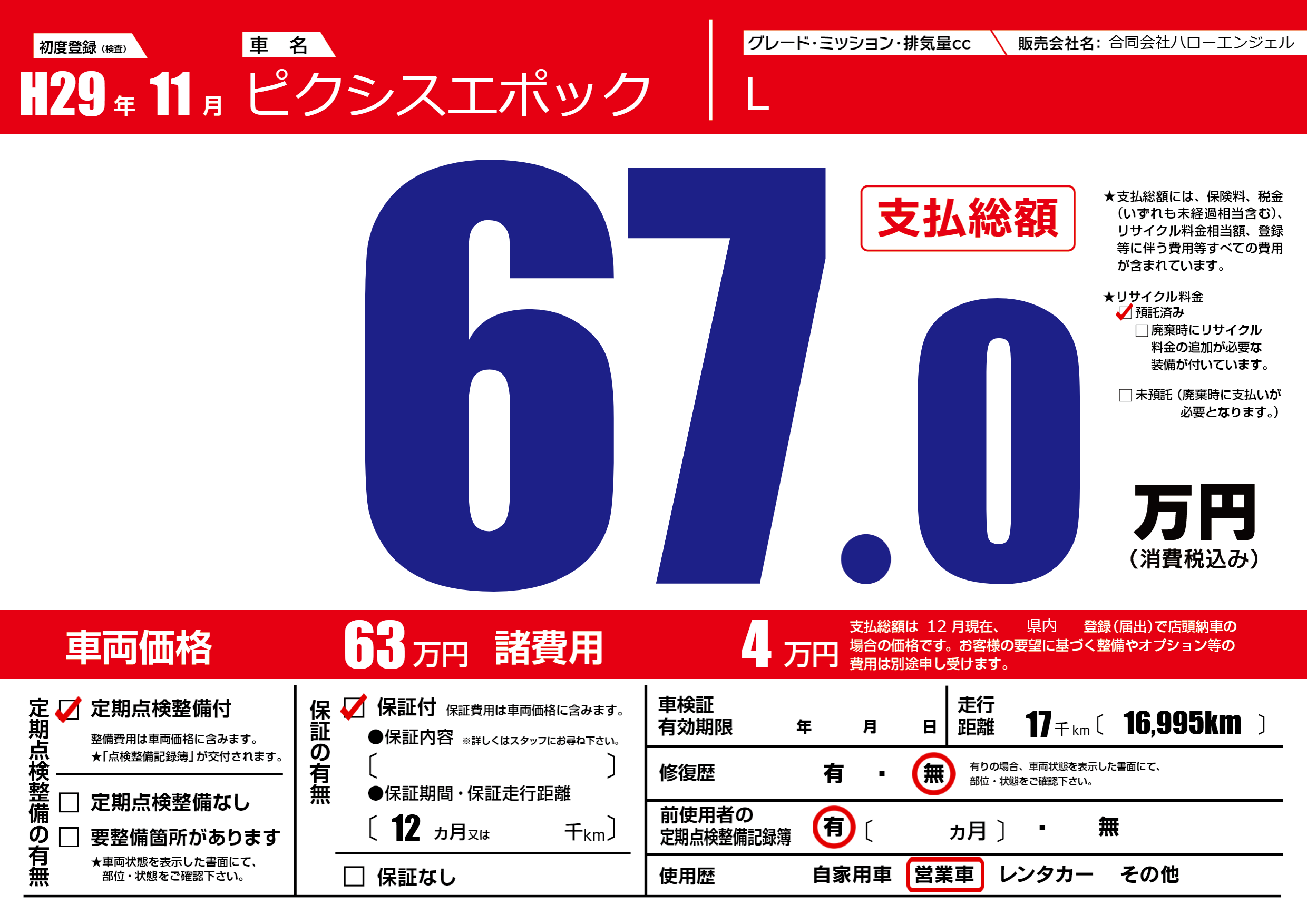 | 車名 | ピクシスエポック | グレード ミッション 排気量 |