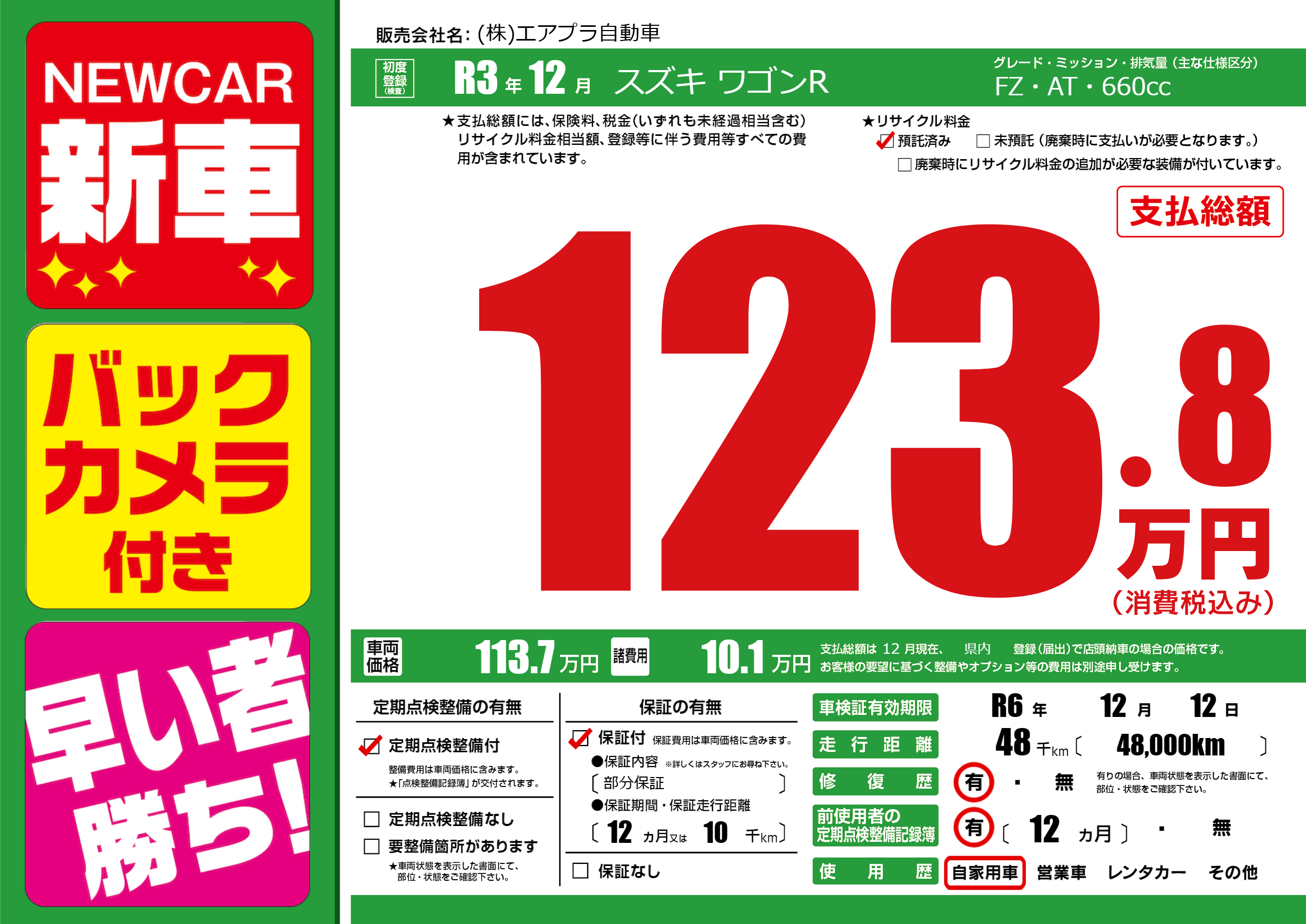 | 走行キロ | 4.8万km | 初年度登録 | R3年12月 |