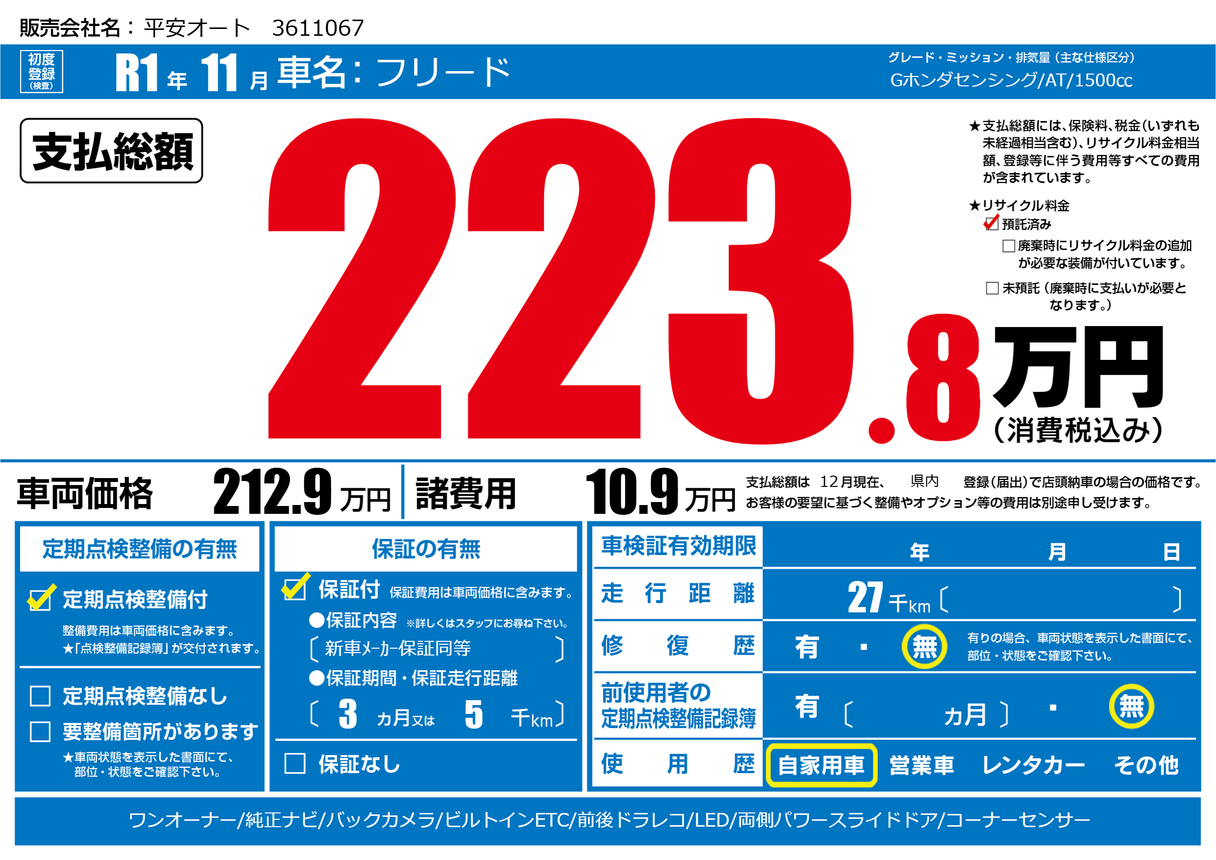 | リサイクル料金 預託済 |