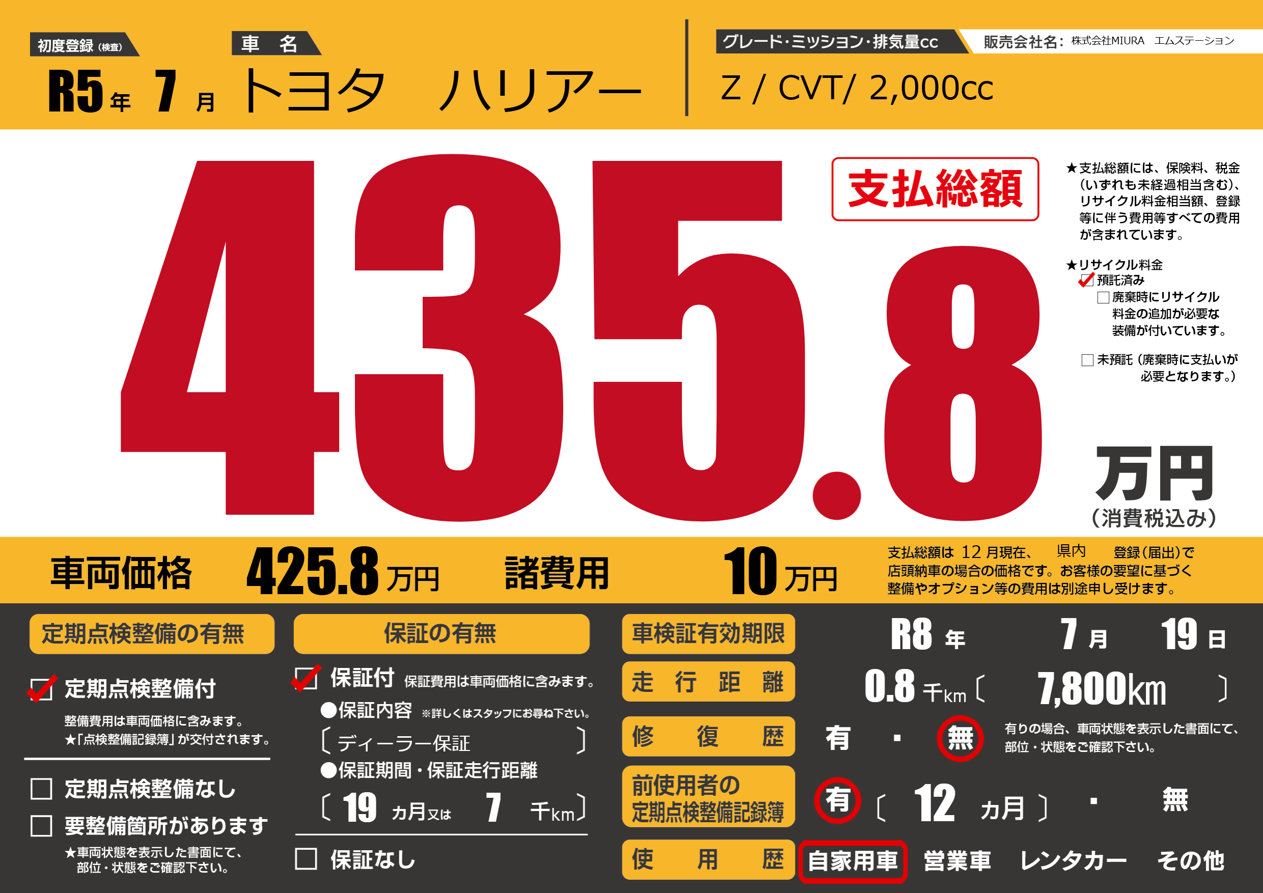 | 車検制限 | R8年 7月 19日 | ||