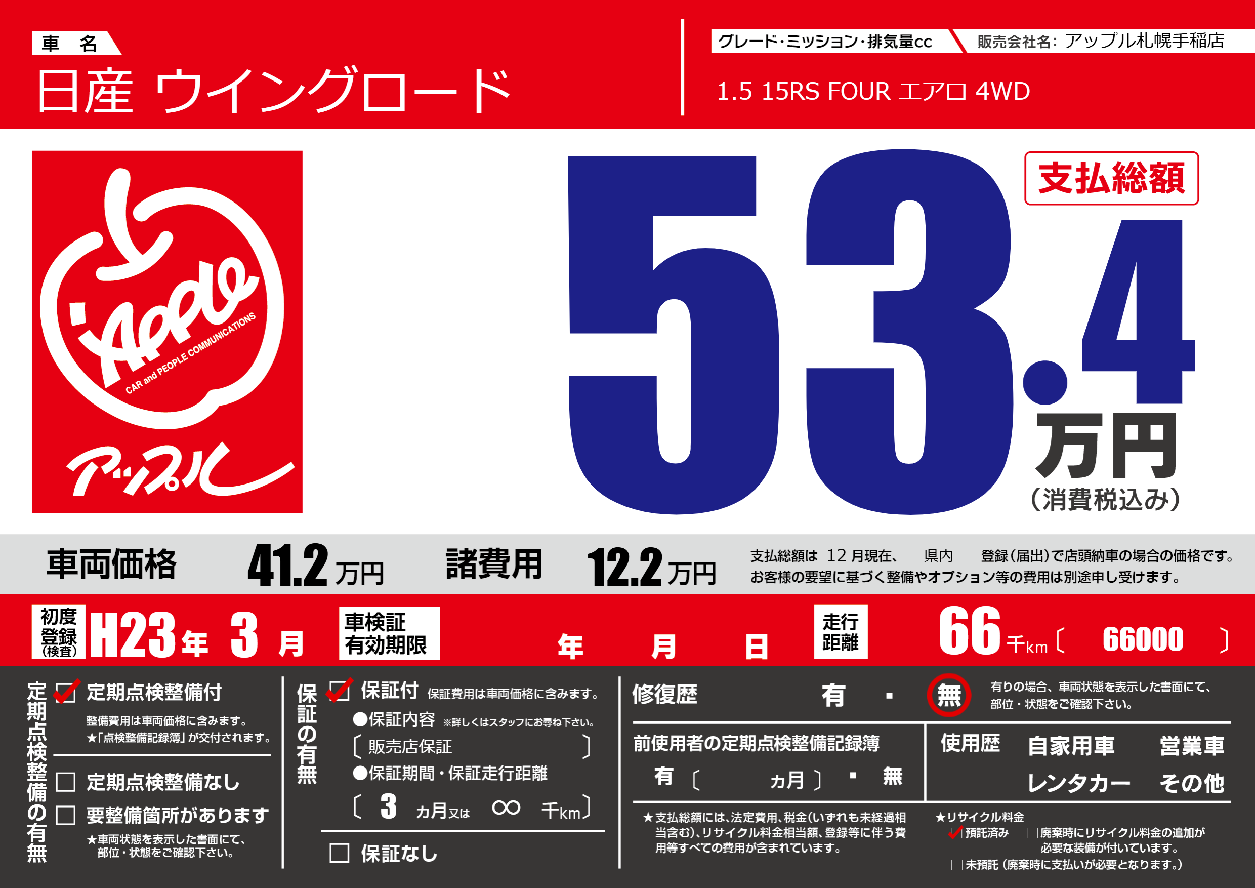 | 初年度登録 | H23年3月 | ||