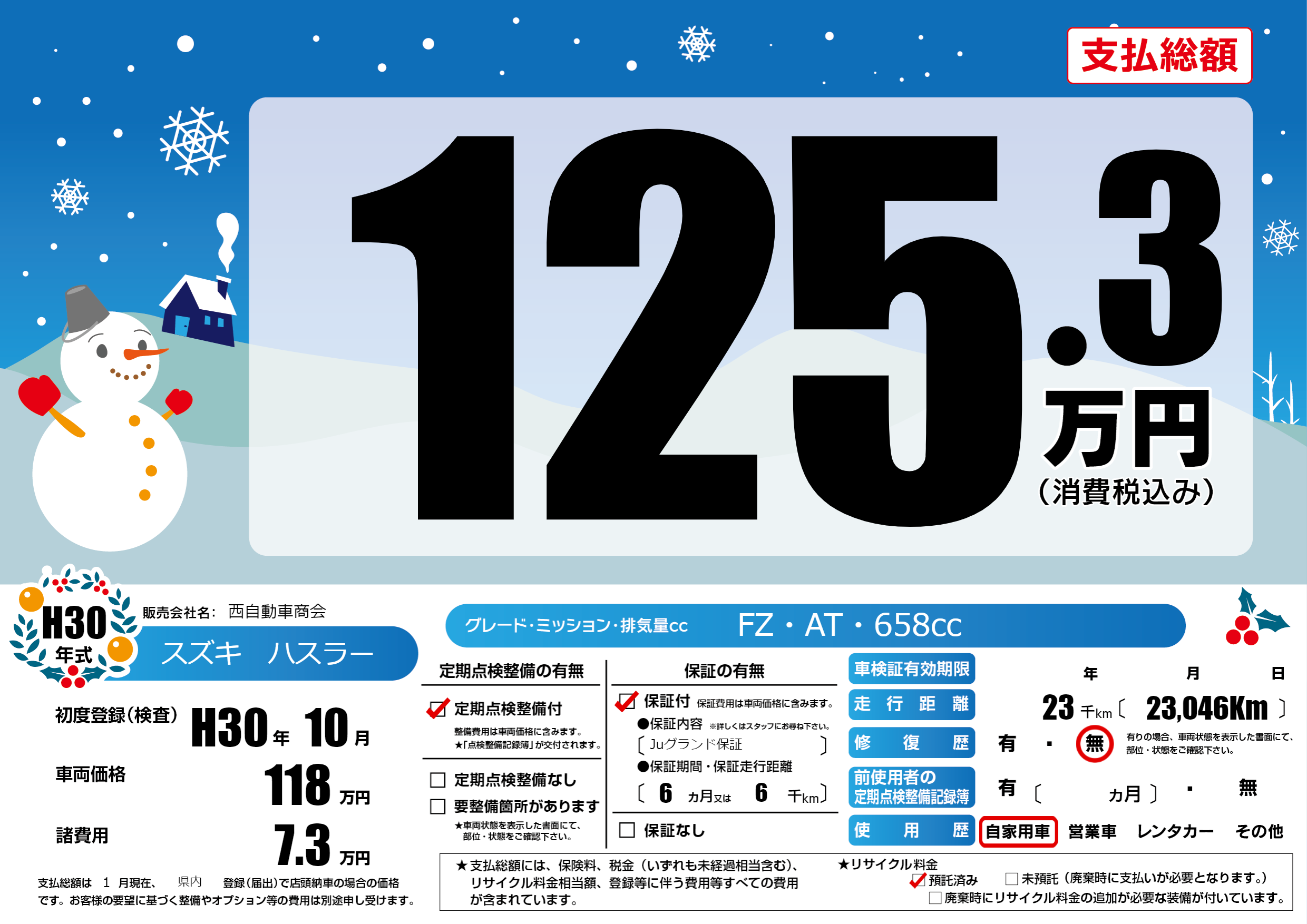 | 走行キロ | 2.3万km | 初年度登録 | H30年10月 |