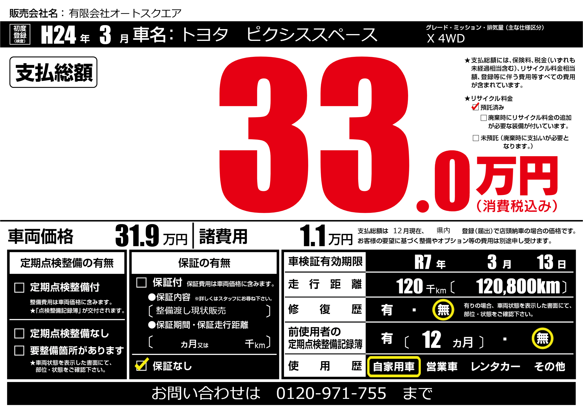 なし | 車検制限 | R7年3月13月 |