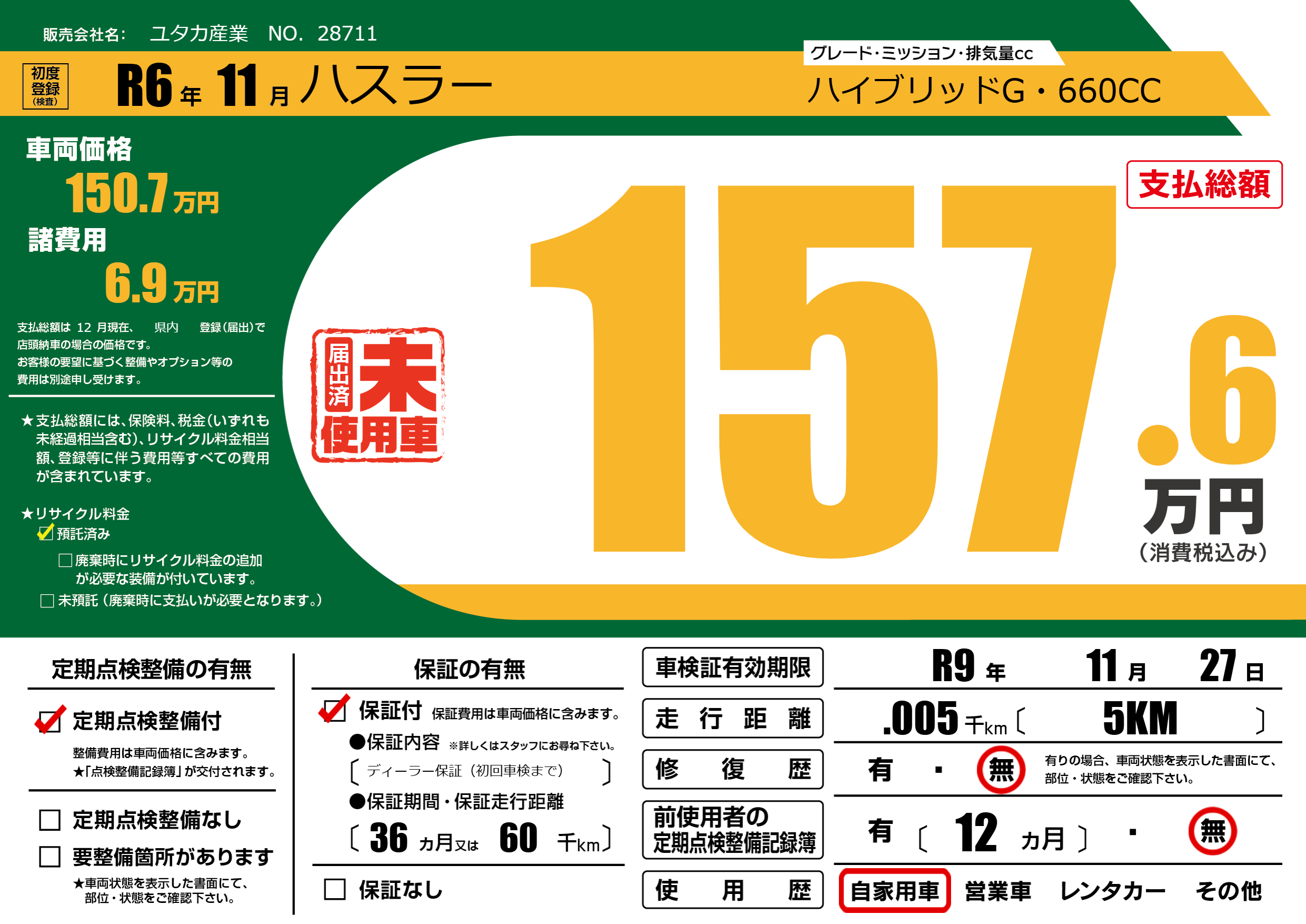 保証内容(ディーラー保証(初回車検まで)) 36ヶ月または60千km