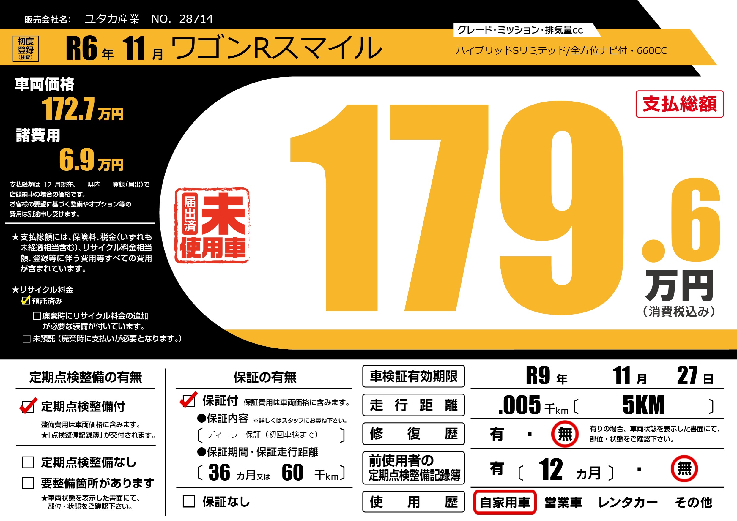 | 走行キロ | - | 初年度登録 | R6年11月 |