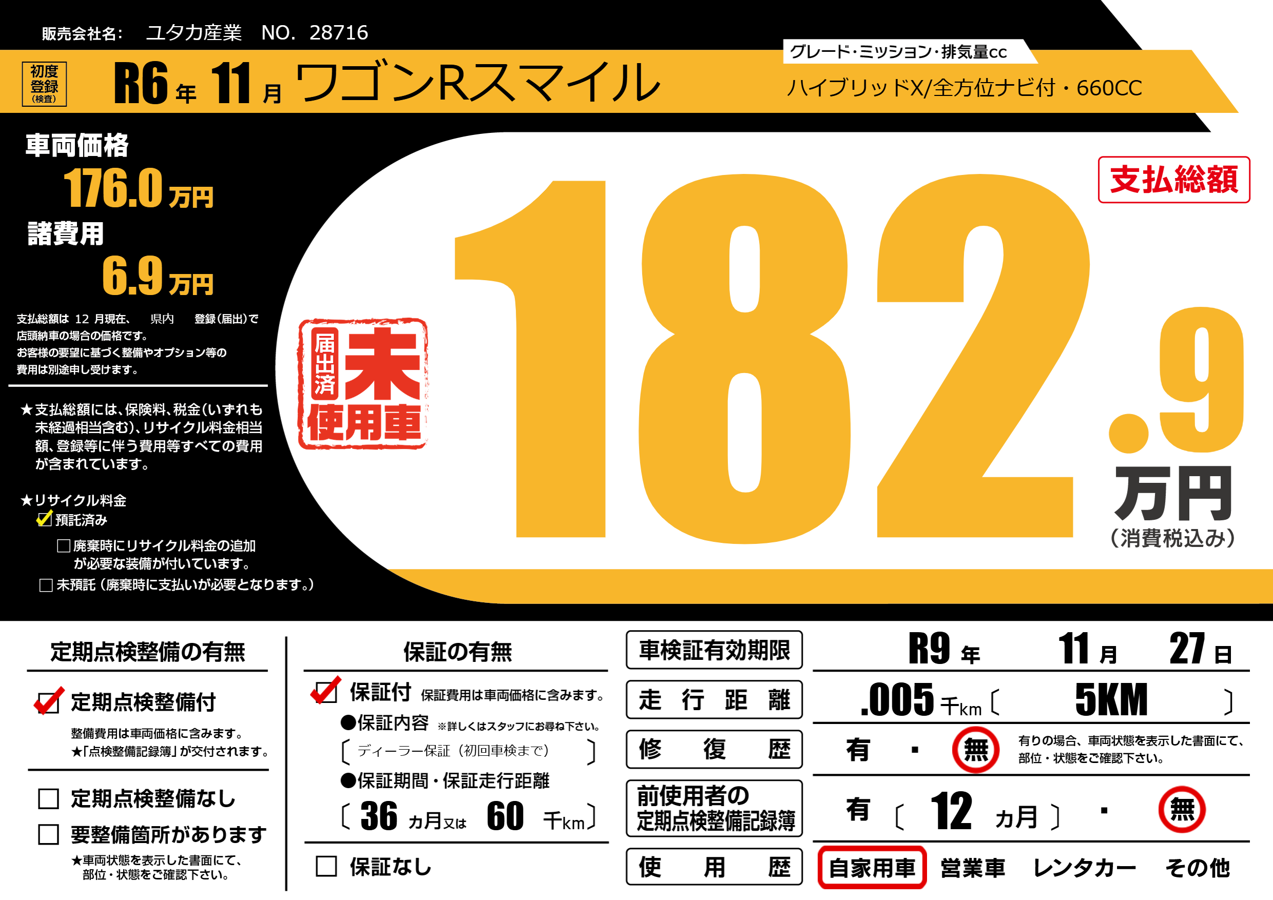 | 走行キロ | - | 初年度登録 | R6年11月 |