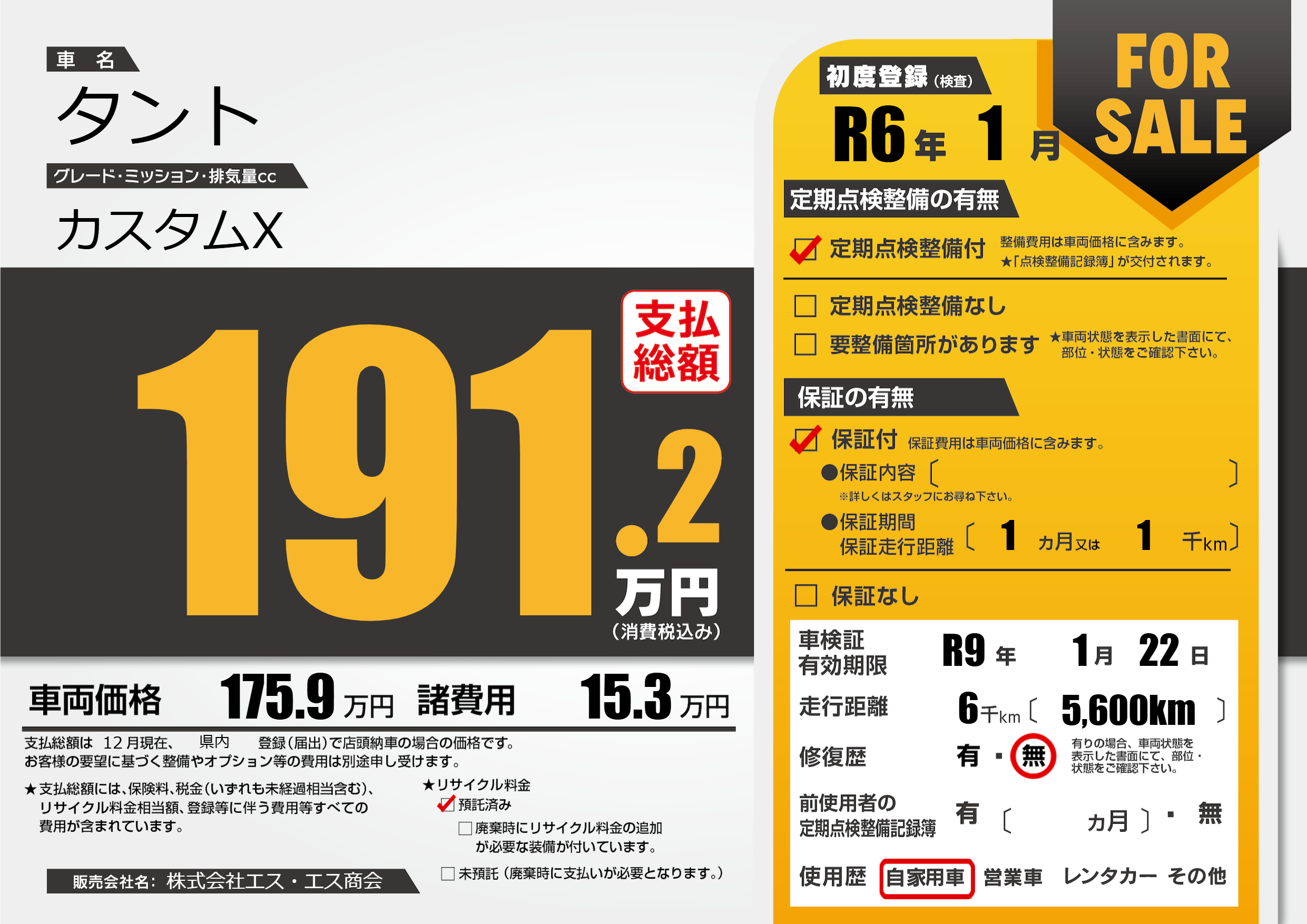 なし | 車検制限 | R9年1月22月 |
