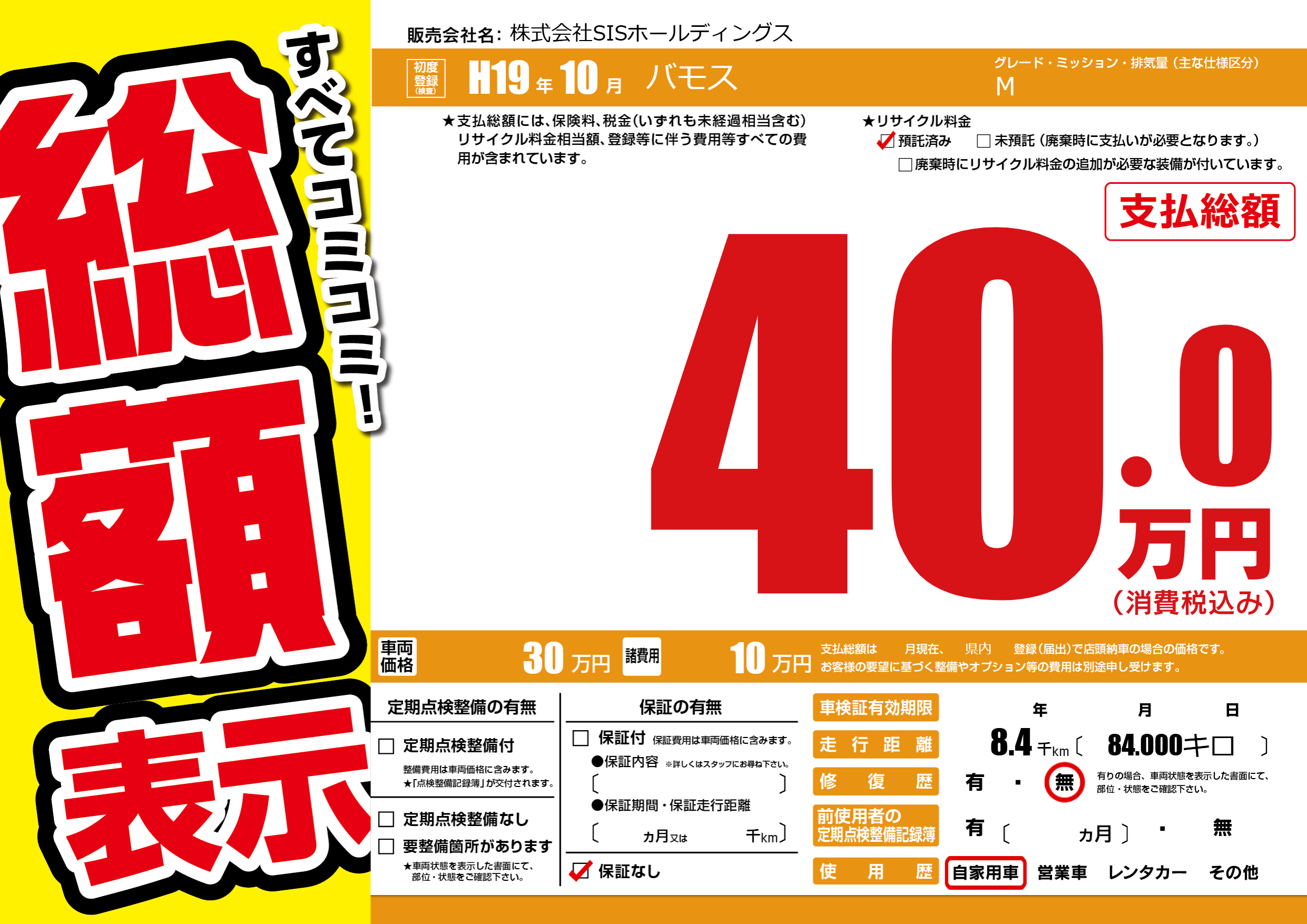 | 車名 | バモス | グレード ミッション 排気量 |