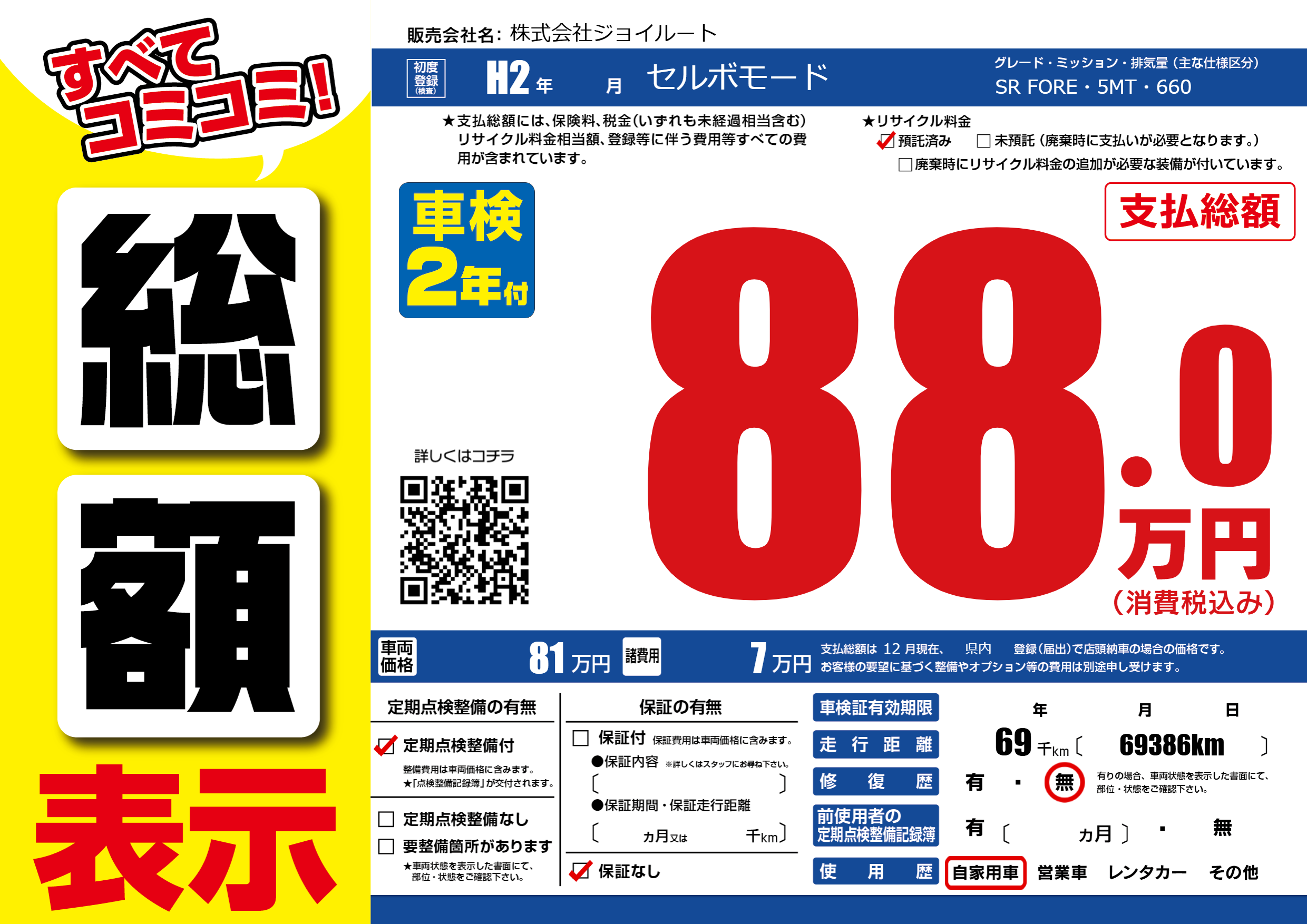 | 走行キロ | 6.9万km | ||