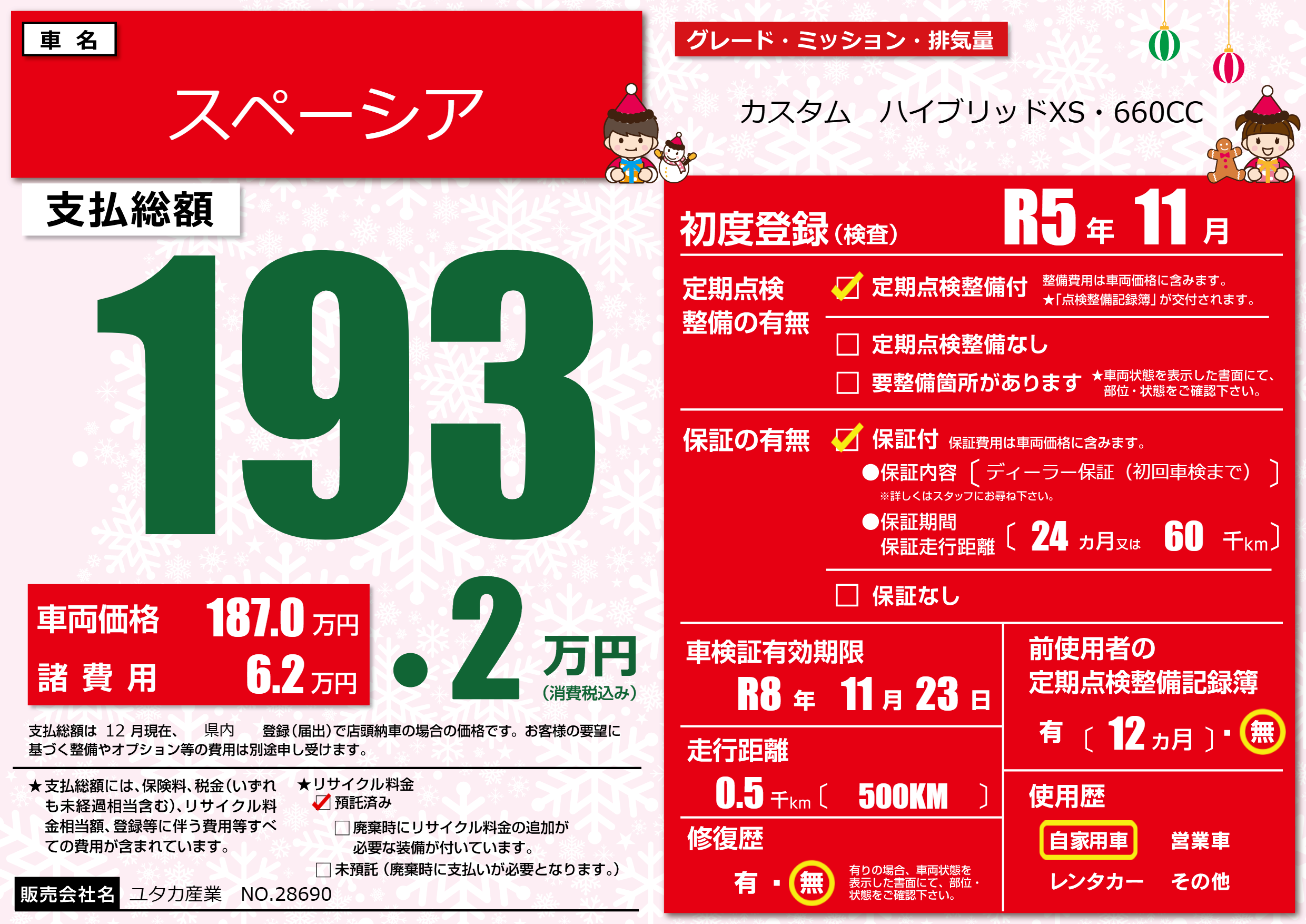 | 車名 | スペーシア | グレード ミッション 排気量 |