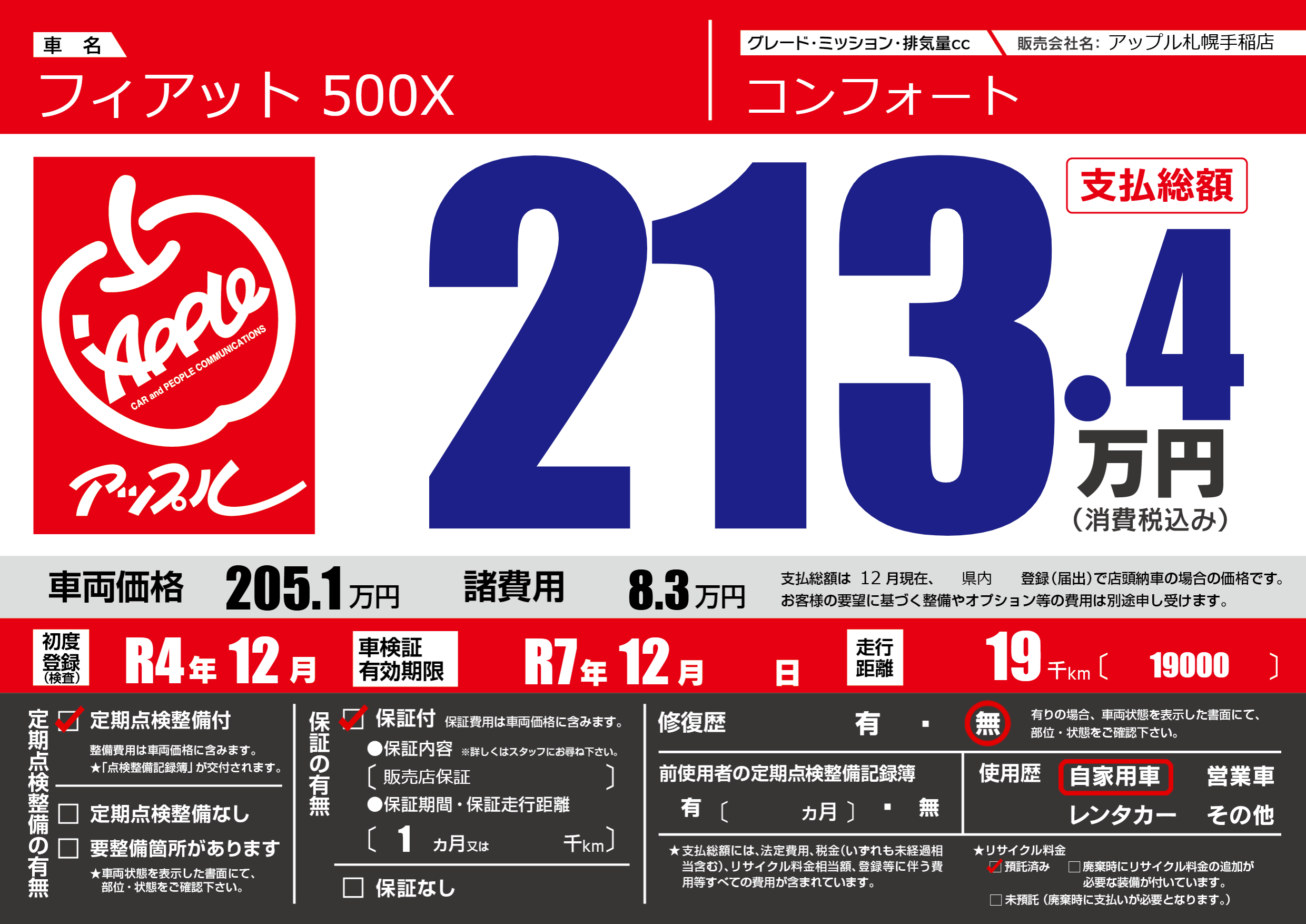 | 車検制限 | R7年 12月 - 日 | ||