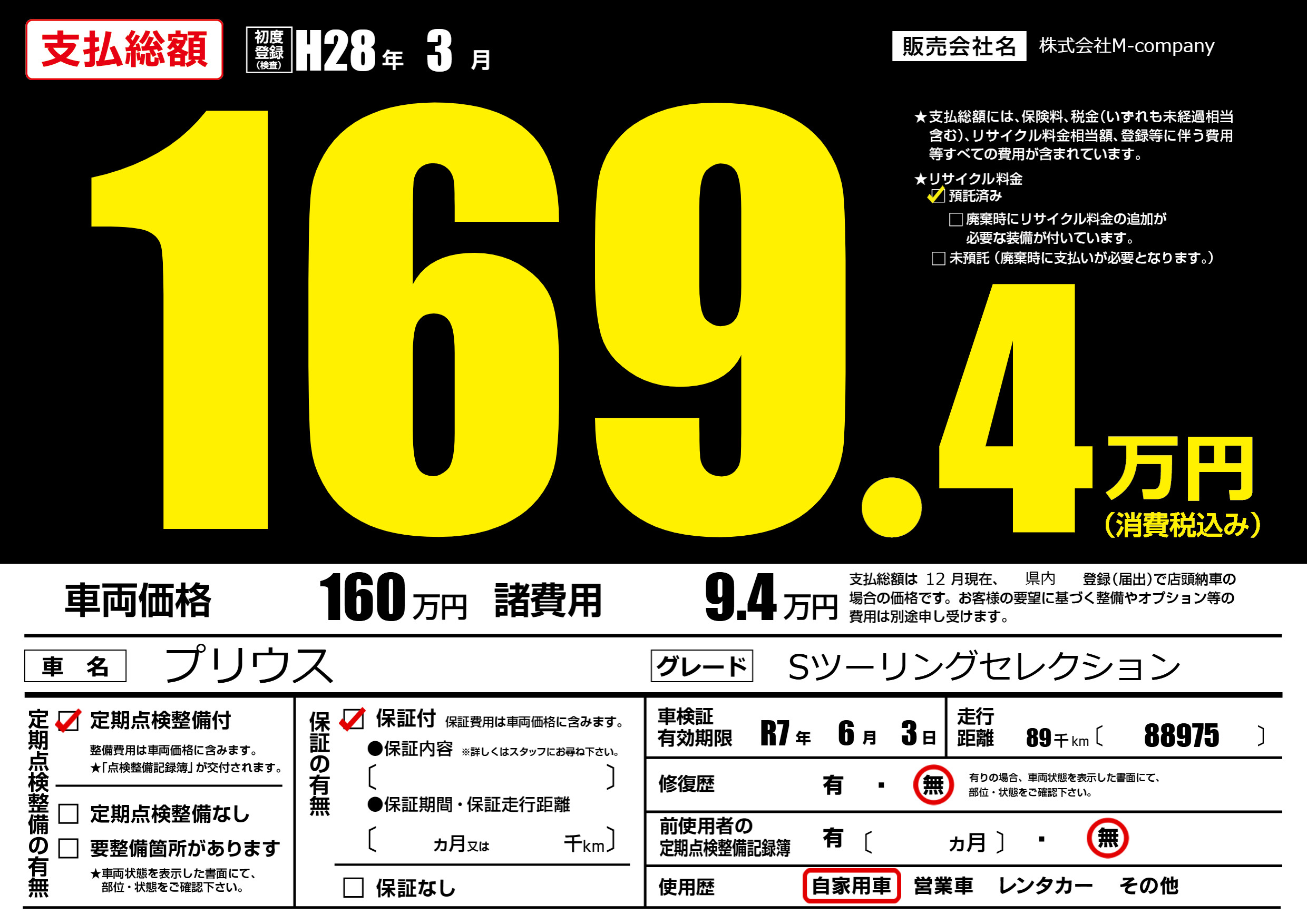 なし | 車検制限 | R7年6月3月 |