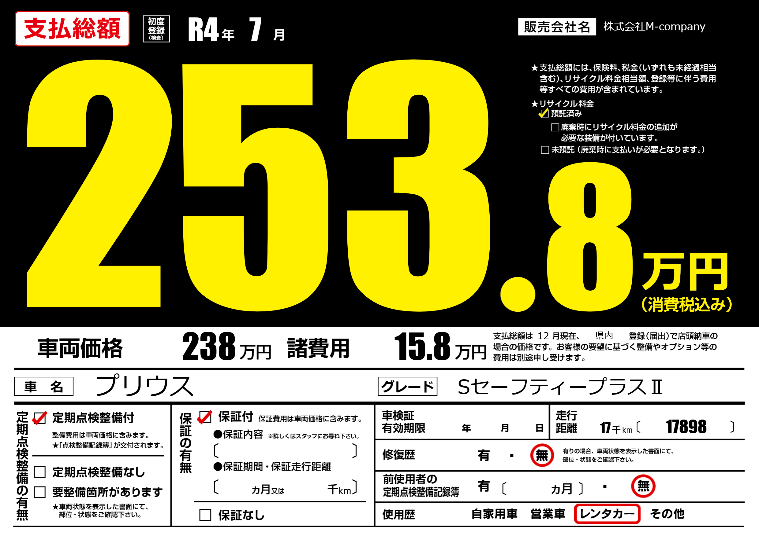 | 車検制限 | - 年 - 月 - 日 | ||