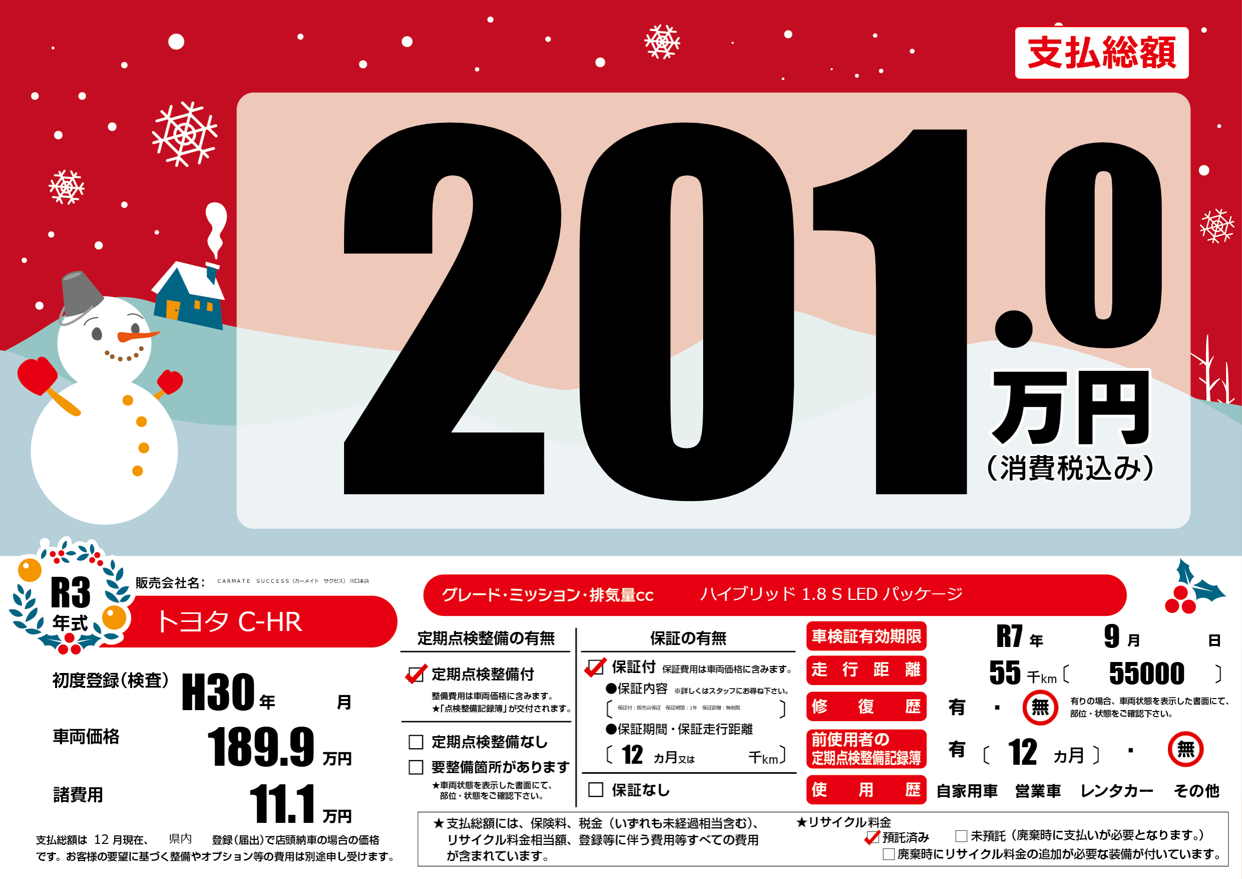| 車検制限 | R7年 9月 - 日 | ||