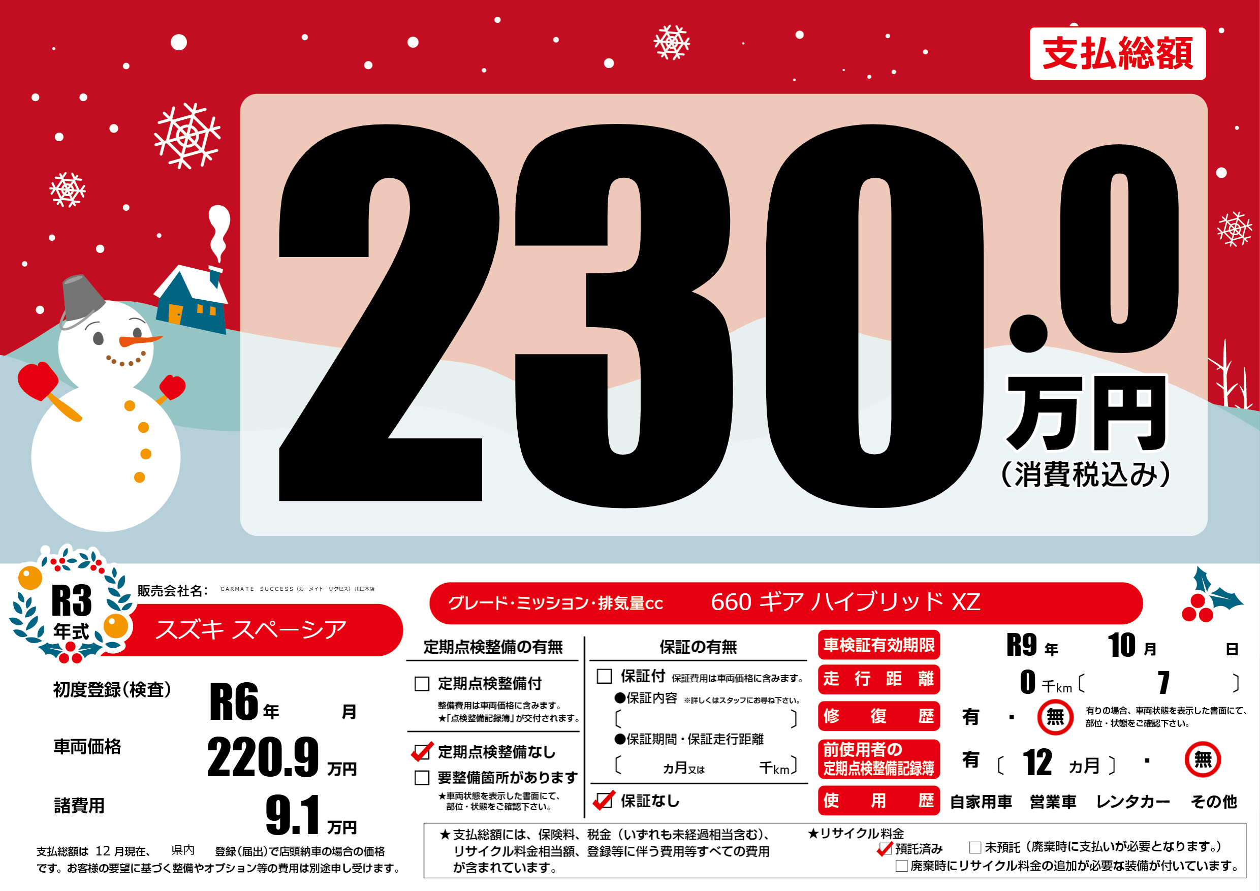 | 走行キロ | - | 初年度登録 | R6年---月 |